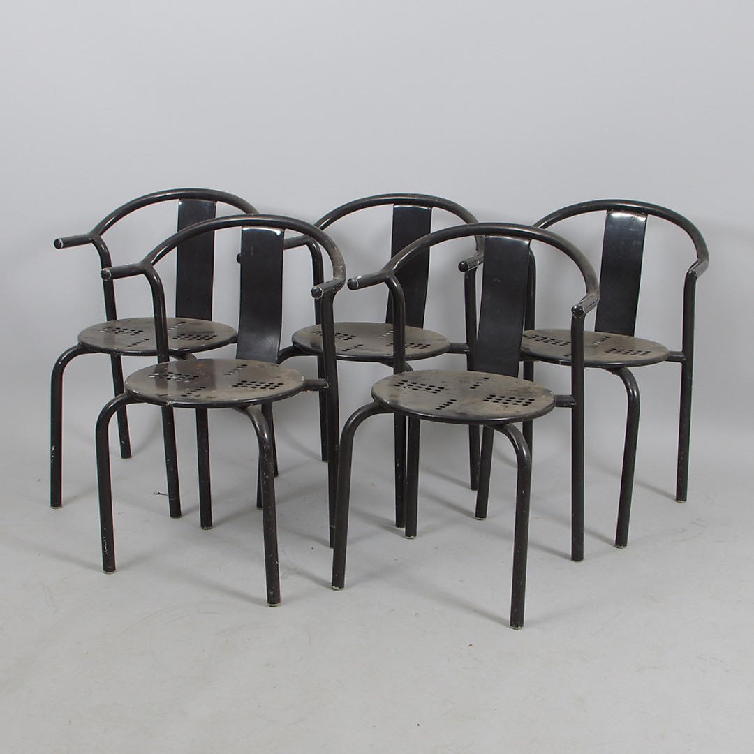 190202. STÜHLE, 5 Stück, lackiertes Metall, stapelbar.