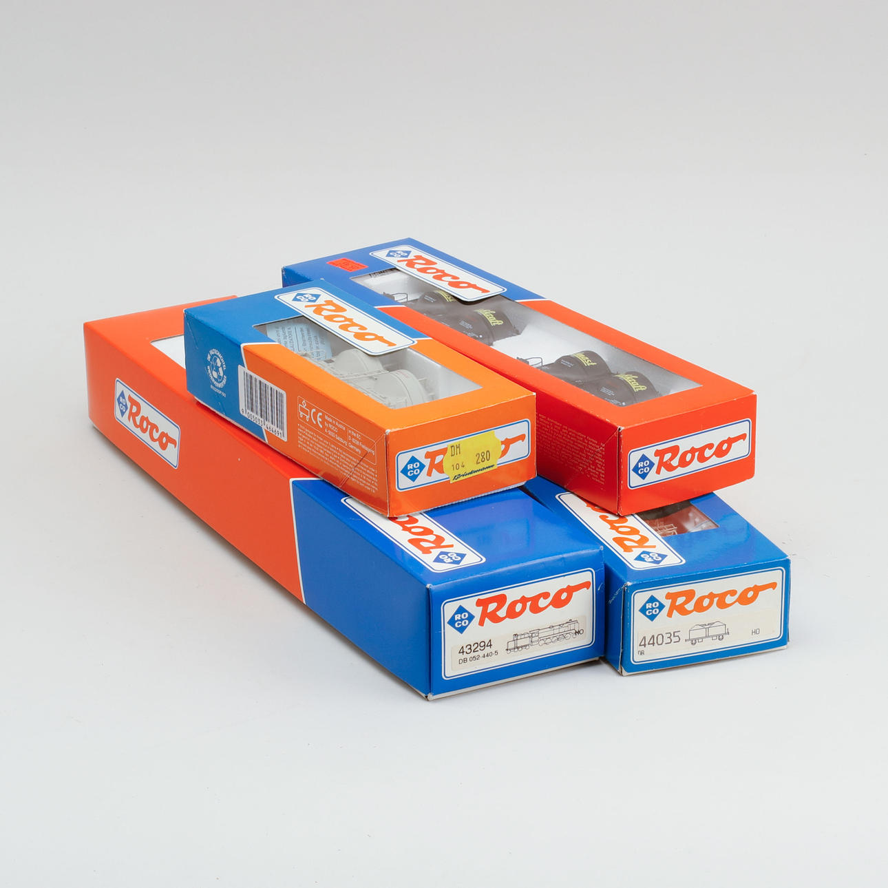 Lokomotive Nr. 43294 und Waggons Nr. 44035, Nr. 44101 und Nr. 46469. In Originalverpackungen.