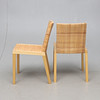 Holzrahmen. Rückenlehne und Sitzfläche aus Rattan. Bezeichnet mit Etikett. Höhe ca. 79 cm.