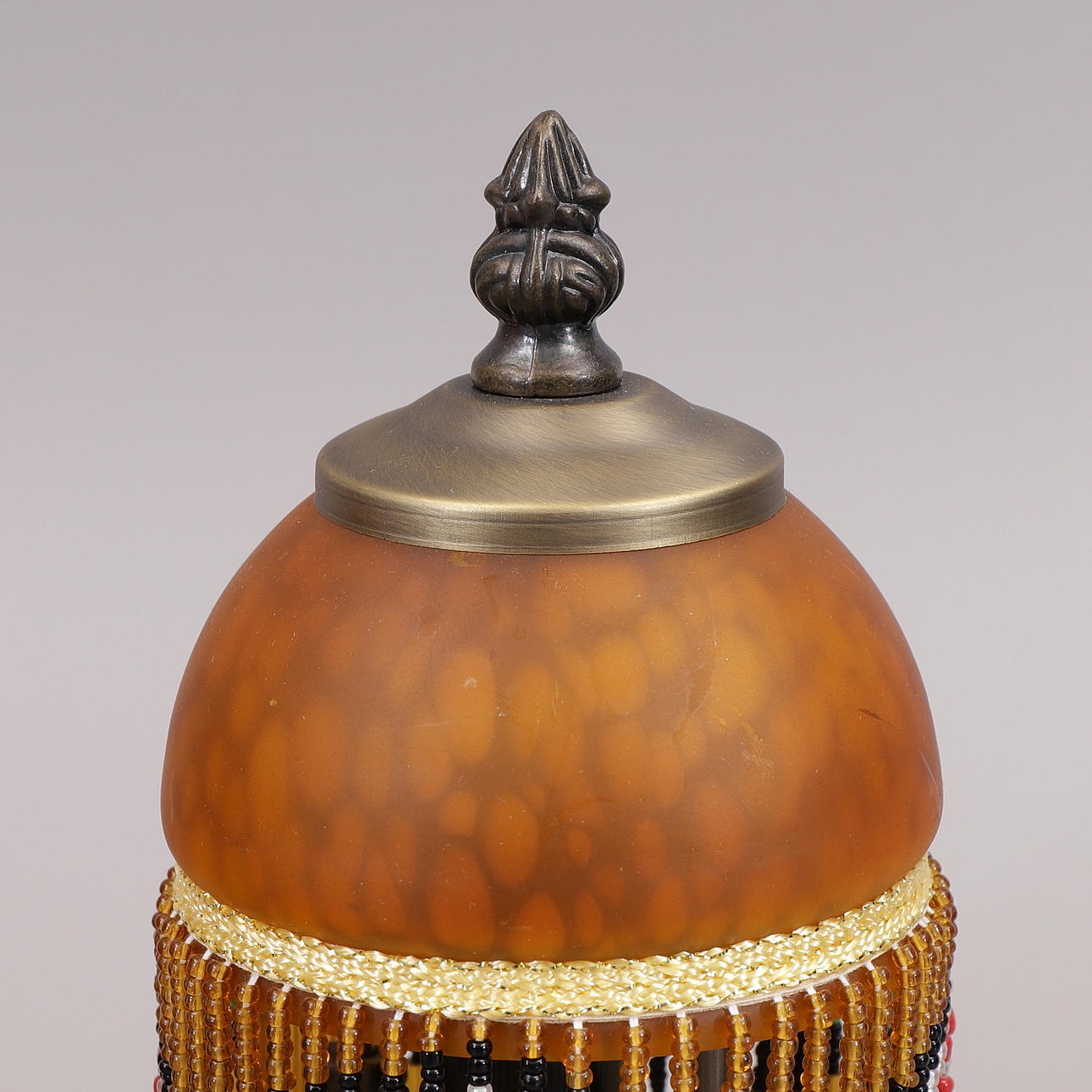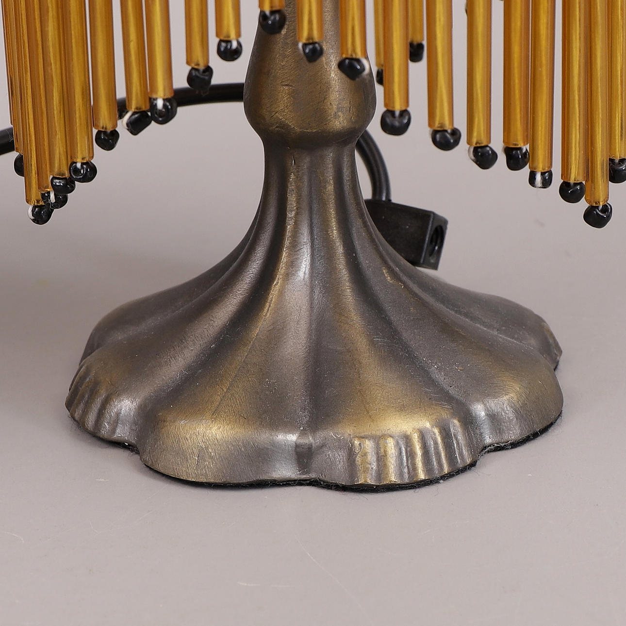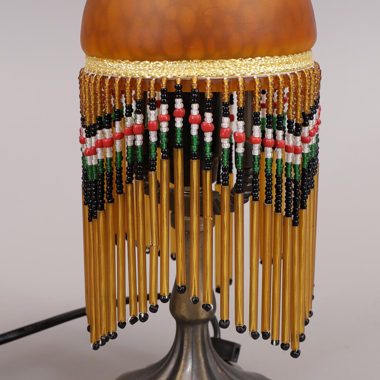 1906340. TISCHLAMPEN mit Perlfransen, ein Paar, Glas, Metall.