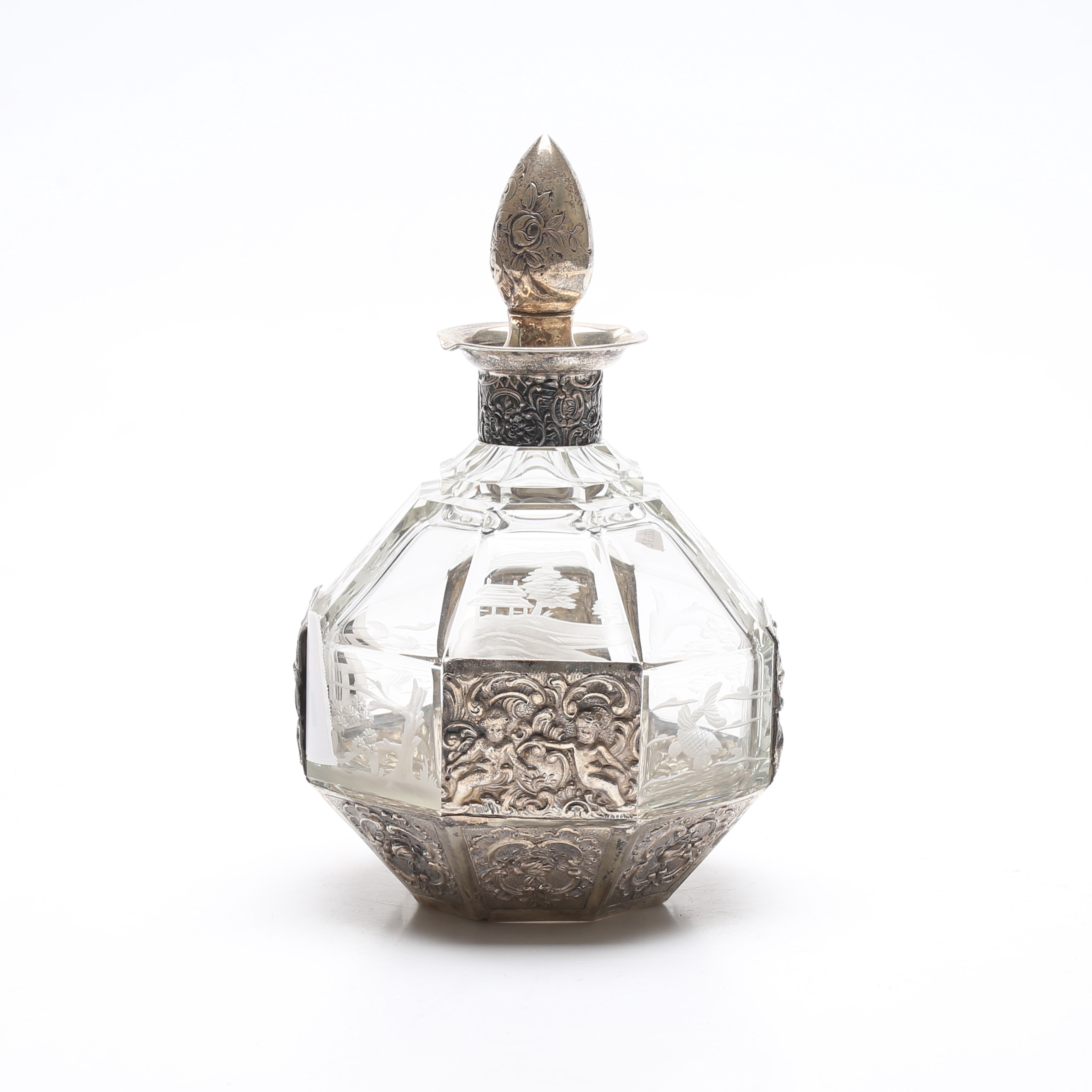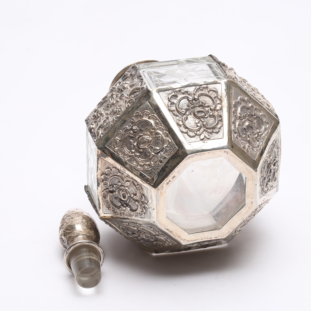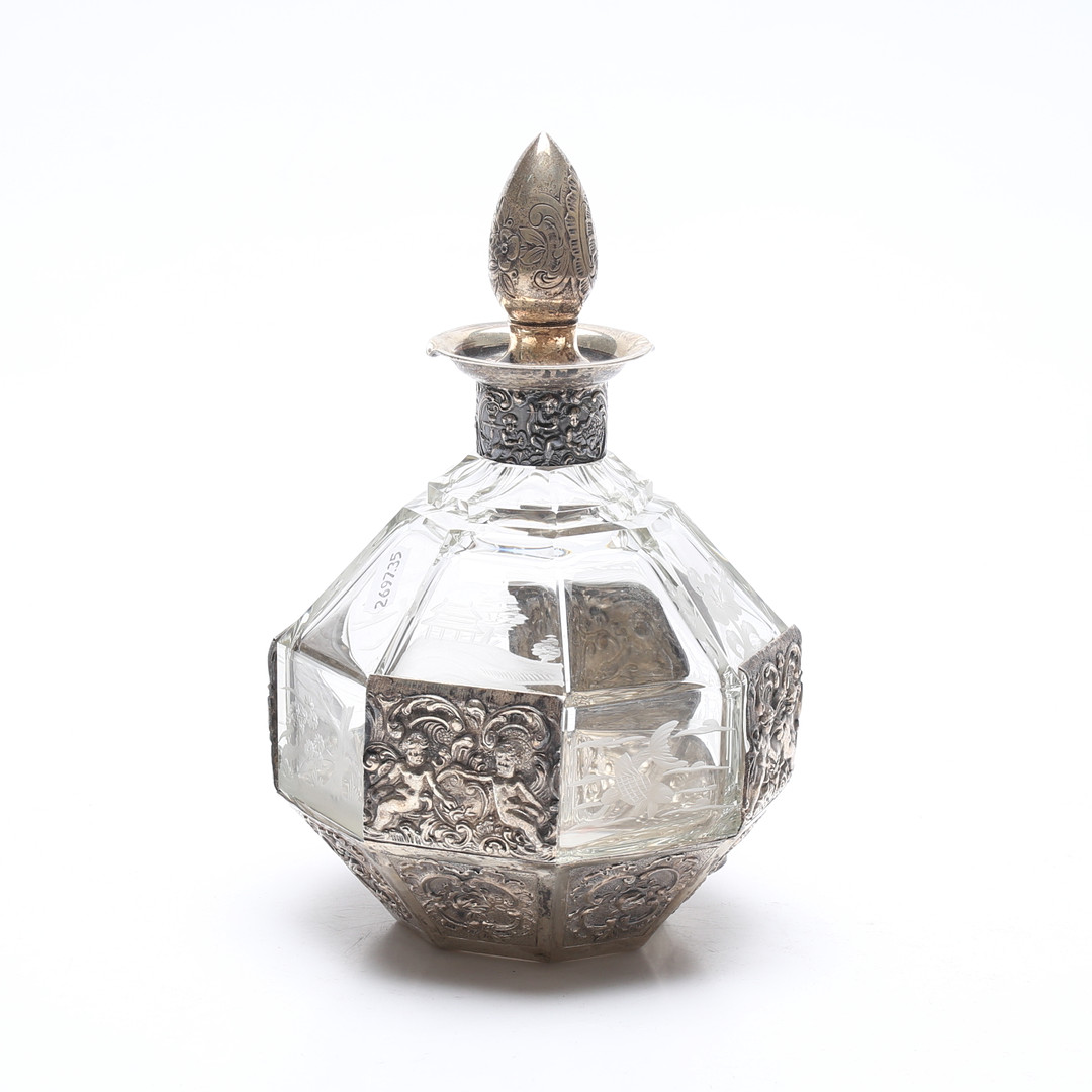 1911033. KARAFFE, Silber und Glas, 20. Jahrhundert.