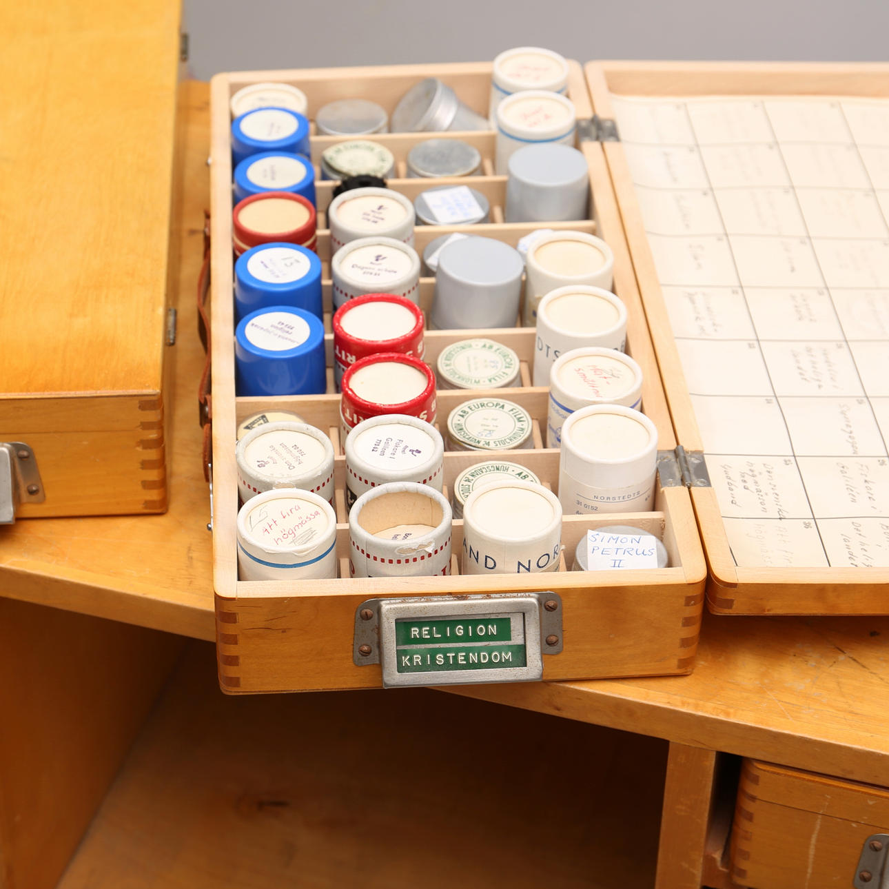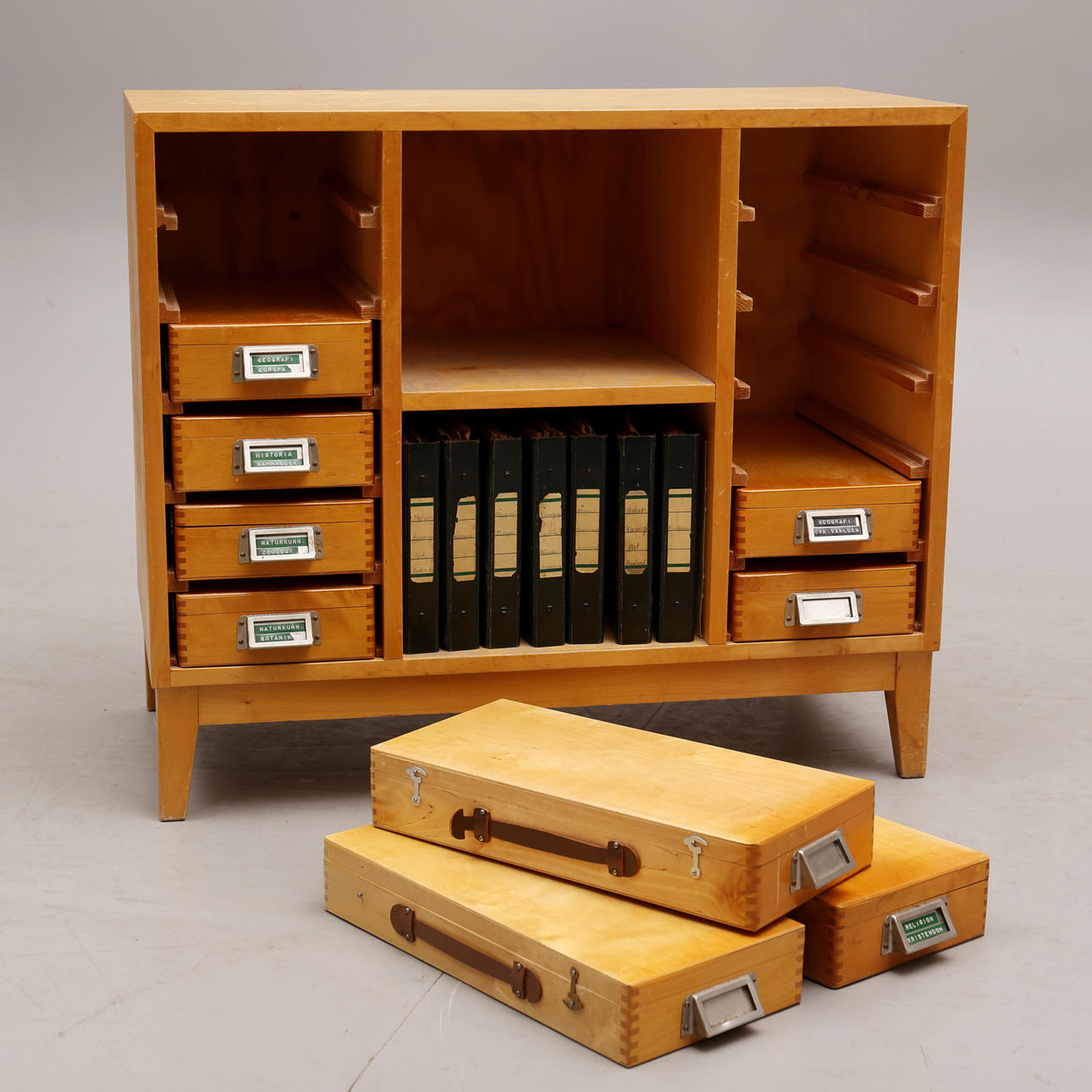 1911469. ARCHIVSCHRANK, mit Schulmaterial, 1950er Jahre.