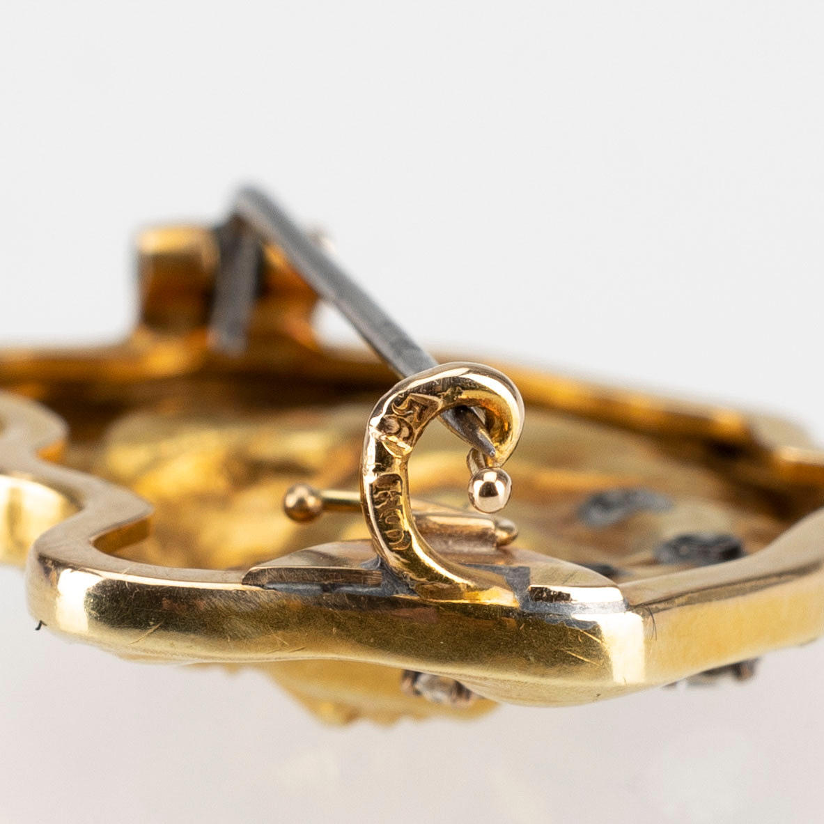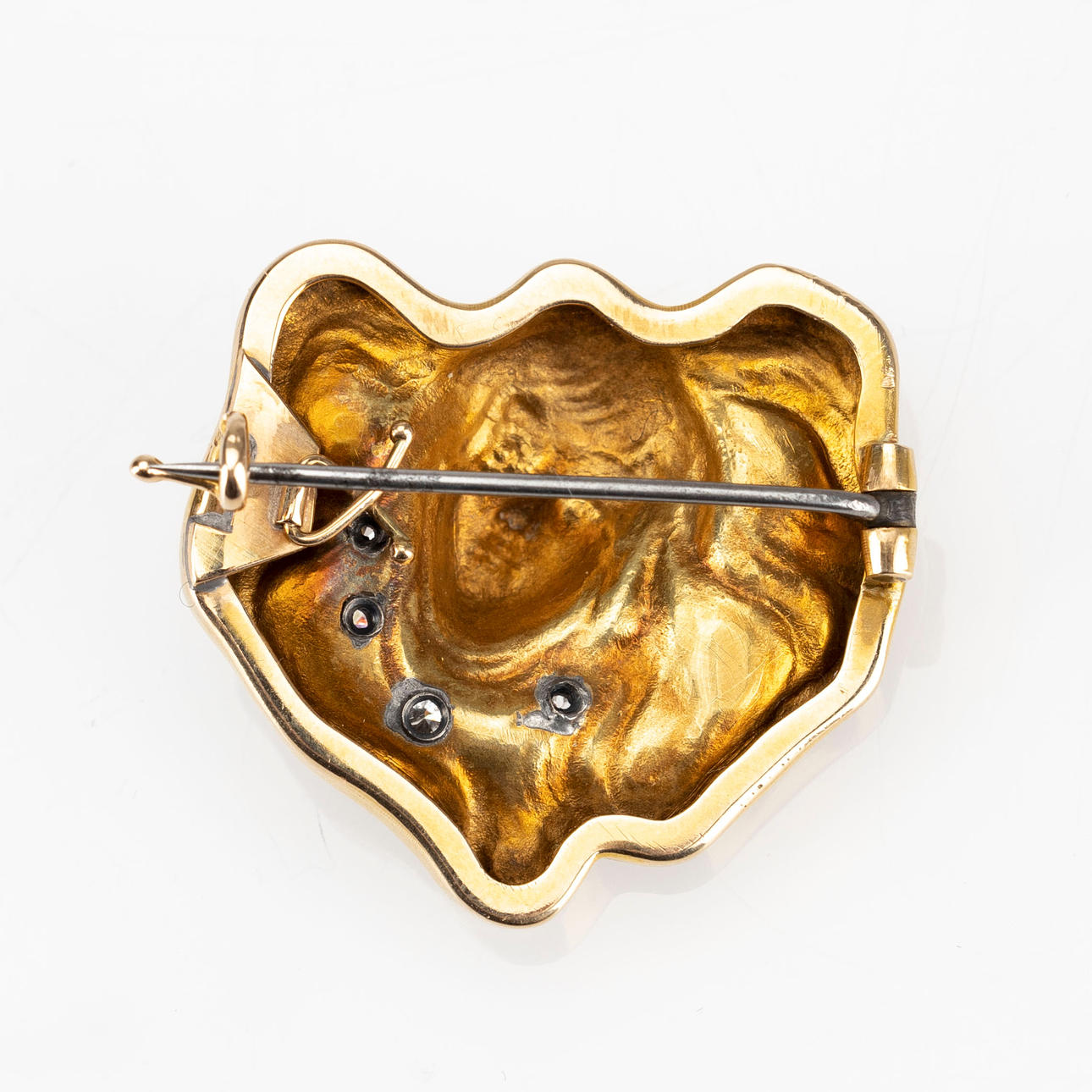 1912467. FABERGÉ BROSCHE, 14K (56) Gold, vier Diamanten.
