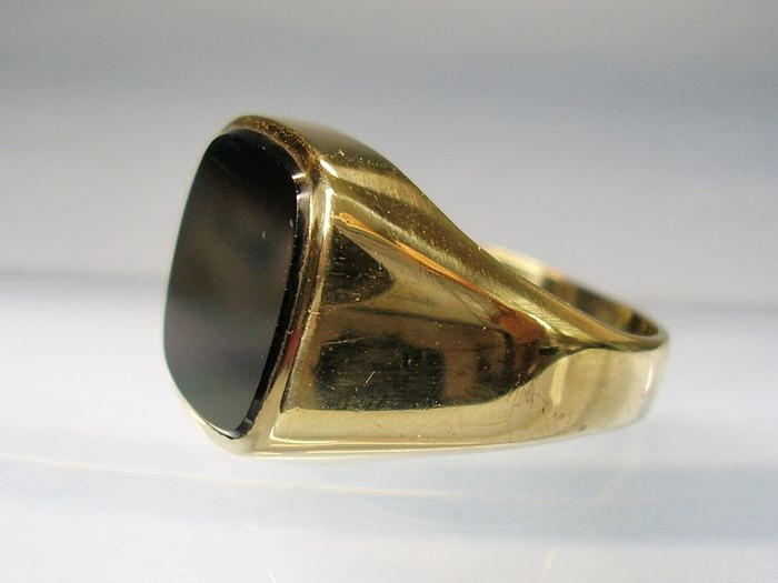 Er ist besetzt mit einer polierten Onyx-Platte von 6 ct.