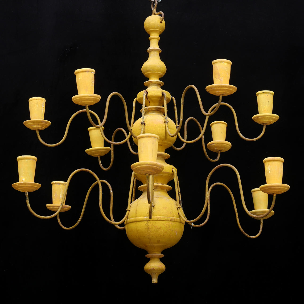 KRONLEUCHTER, Holz/Metall, für Kerzen.