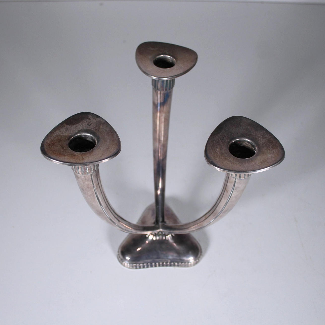 Kerzenleuchter/ Kerzenständer, 925 Silber, punziert, gewichtet, 3-armig. Maße ca.: H: 22 cm, B: 19 cm. Gewicht: 0,456 gr.