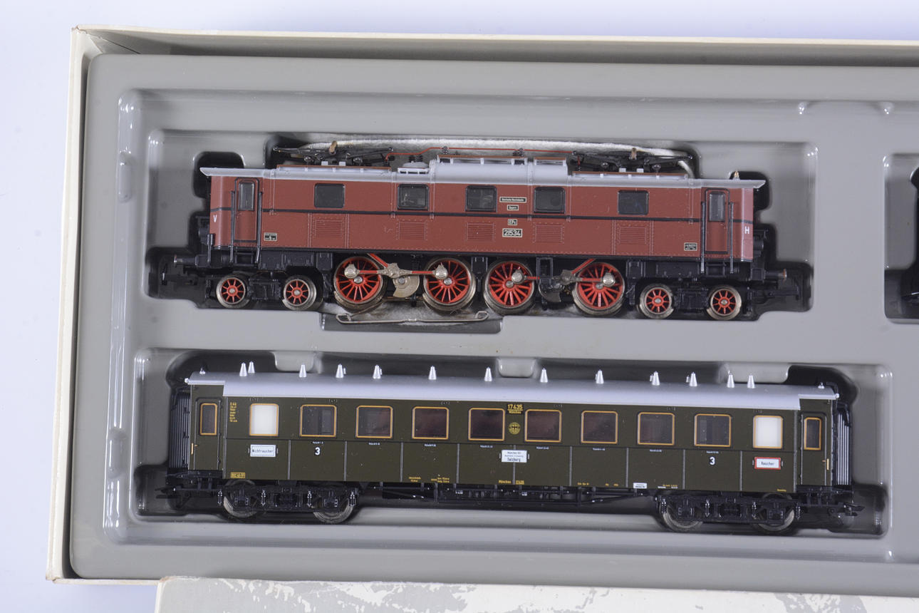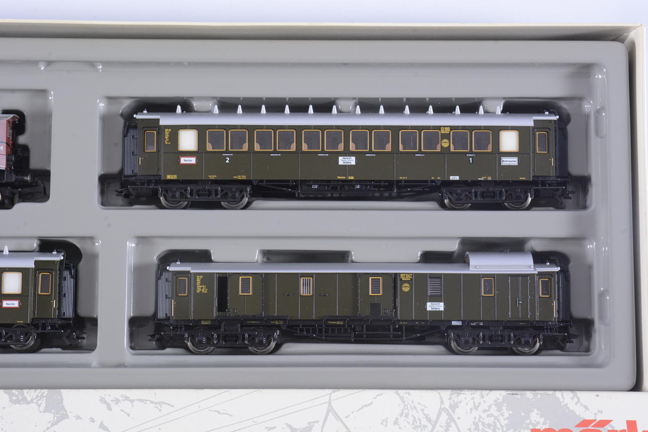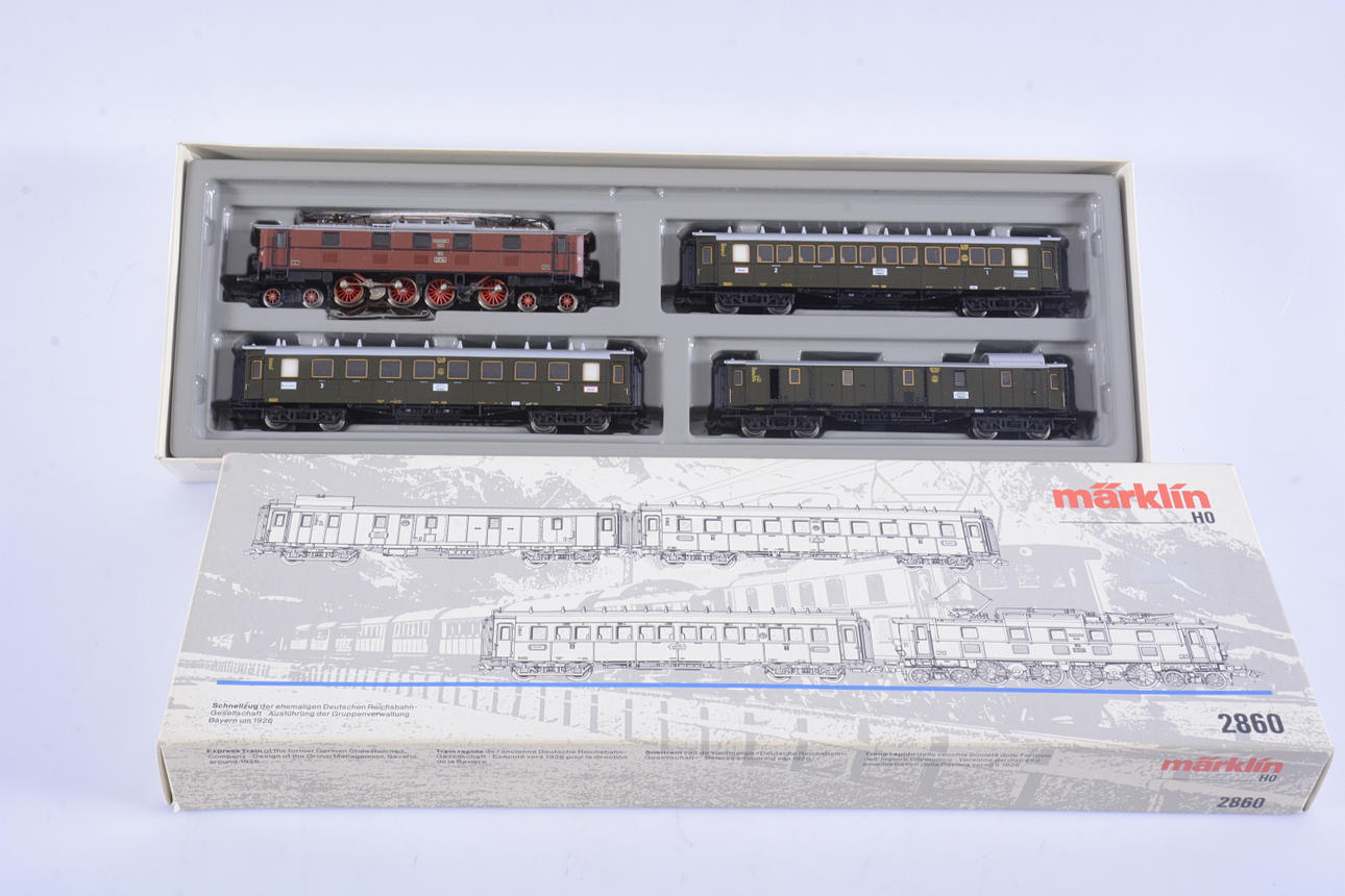 MÄRKLIN HO 2860, Lokomotive und 3 Waggons.