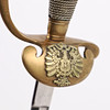 Preußischer Beamtendegen, um 1910. Degen mit einer beidseitig einfach gekehlten, ursprünglich ziselierten Klinge, Messinggefäß mit nierenförmigem Stichblatt à clavier mit der zentrierten Darstellung des preußischen Adlers, geschwelltes und mit Messingdraht umwickeltes Heft, mit geschwärztem Leder bespannte Eisenscheide mit Messingbeschlägen, L.97cm, Klingenbreite: 16mm.