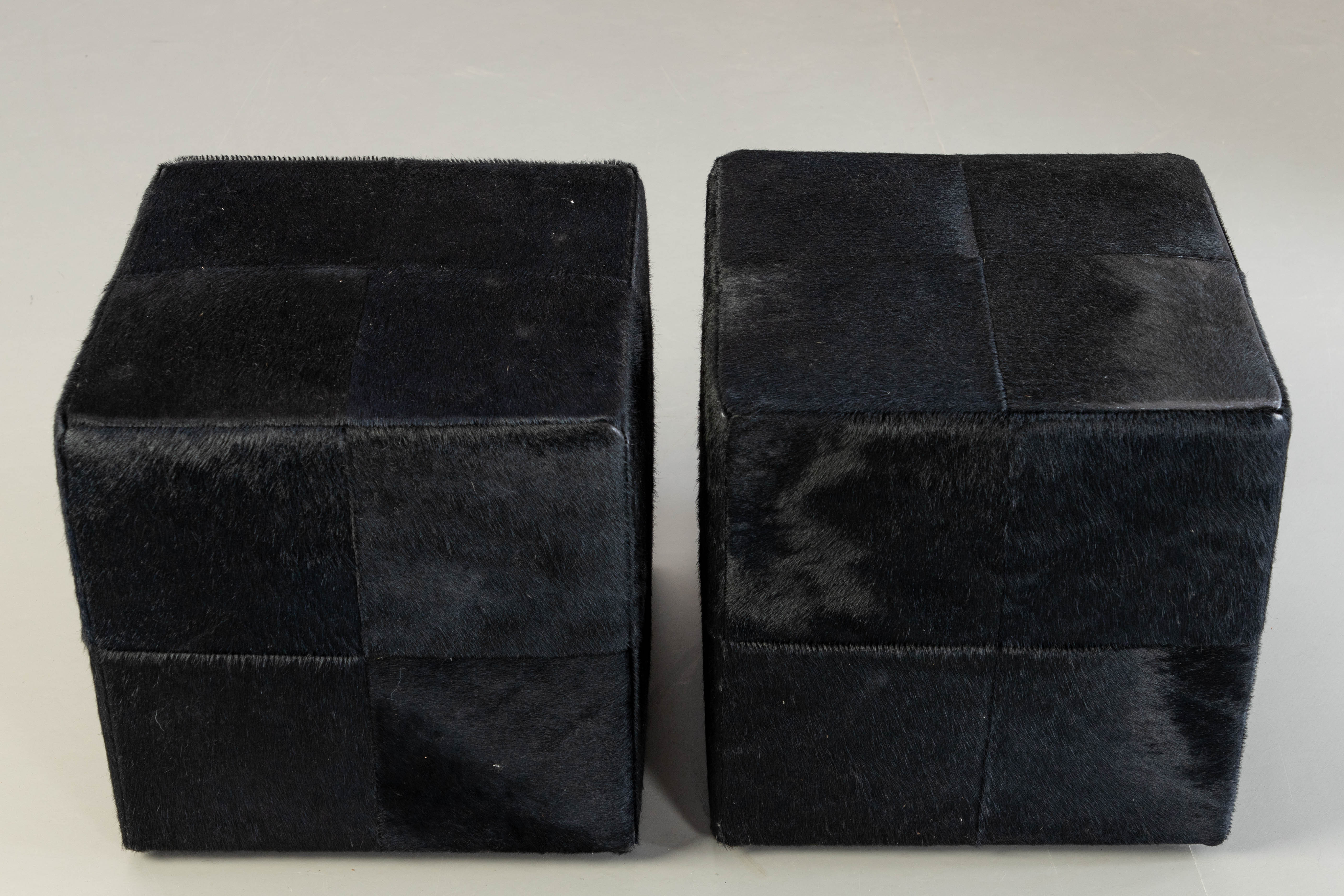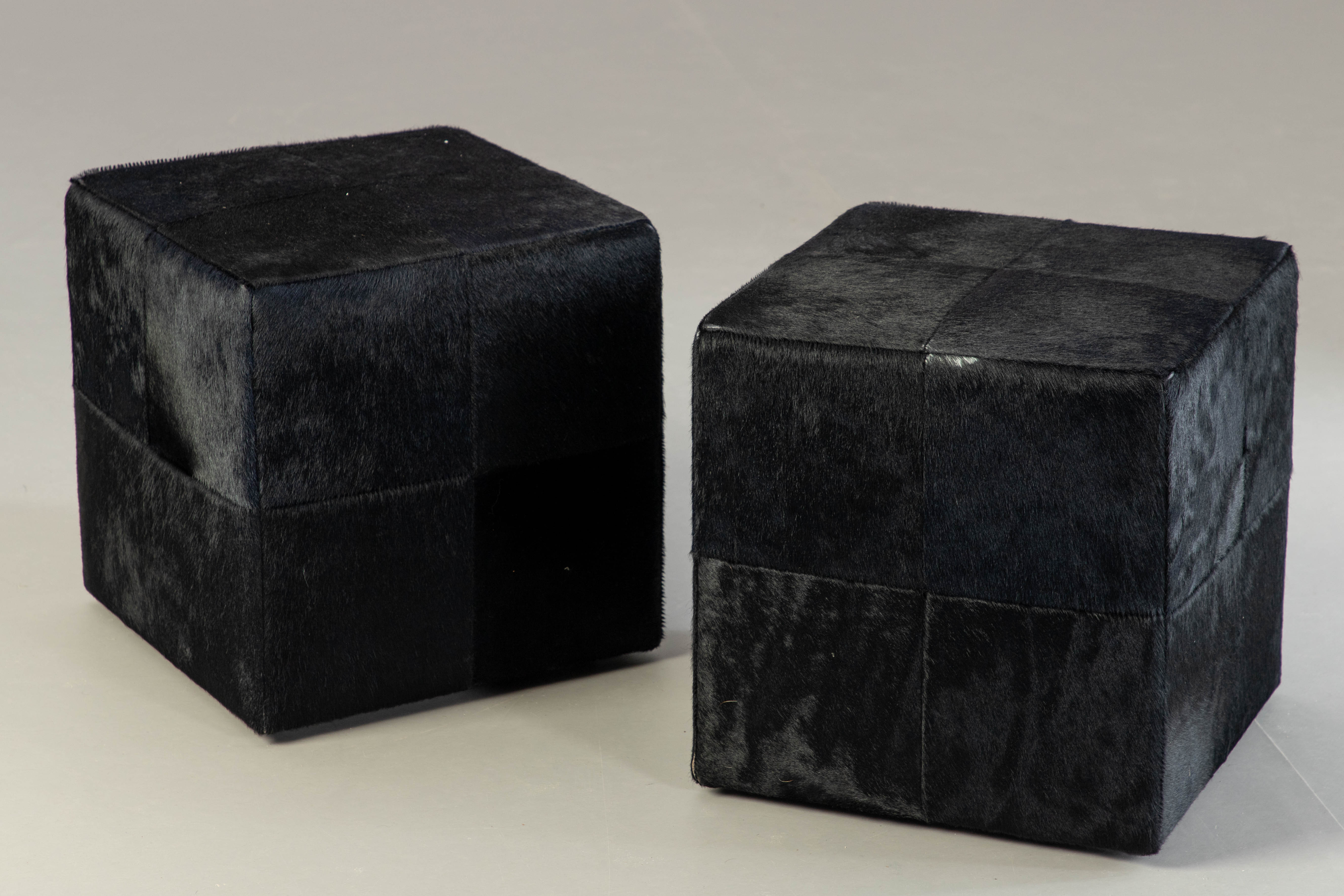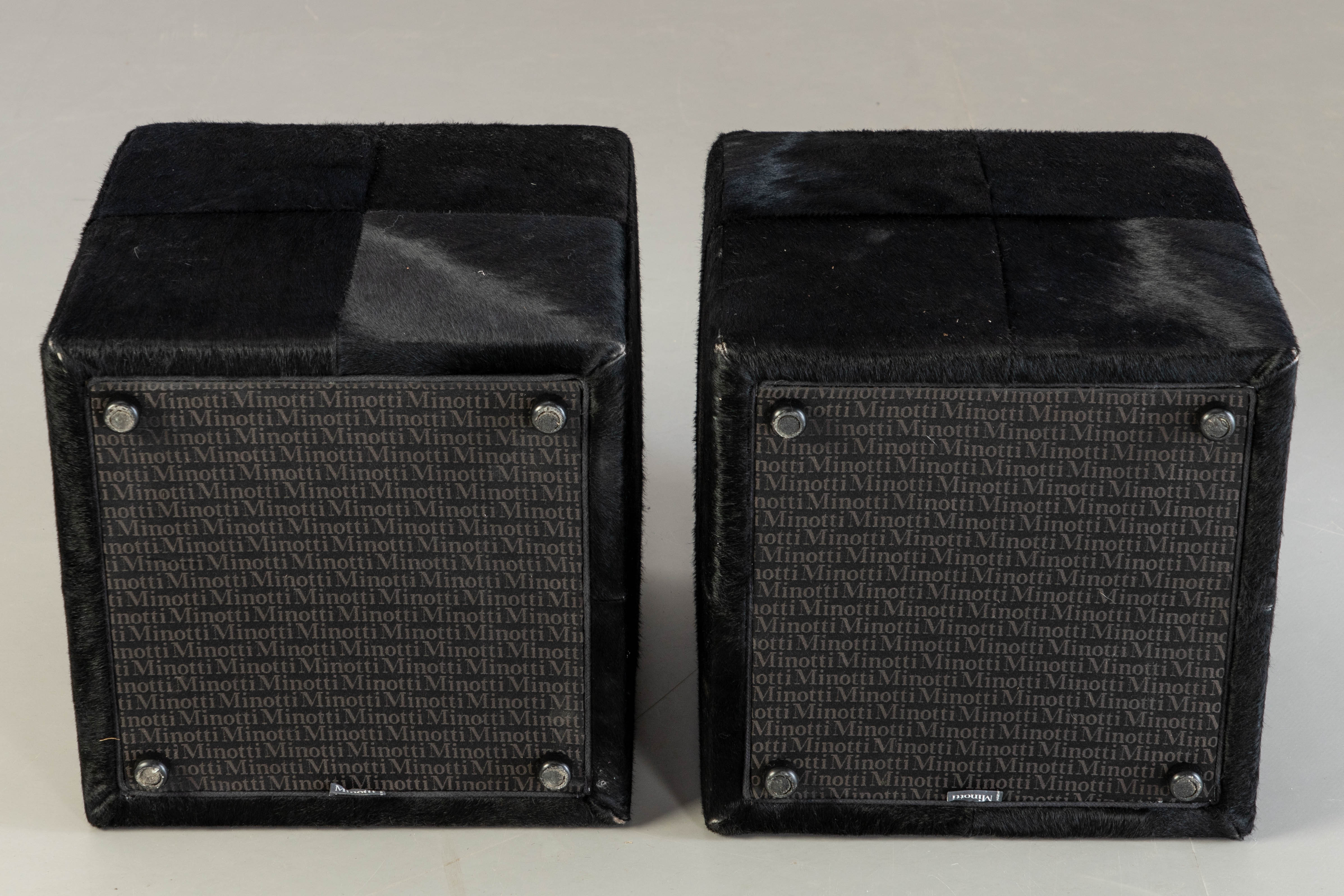 1929431. RODOLFO DORDONI. Minotti, 2 Hocker mit Kuhfell 'Villon'.