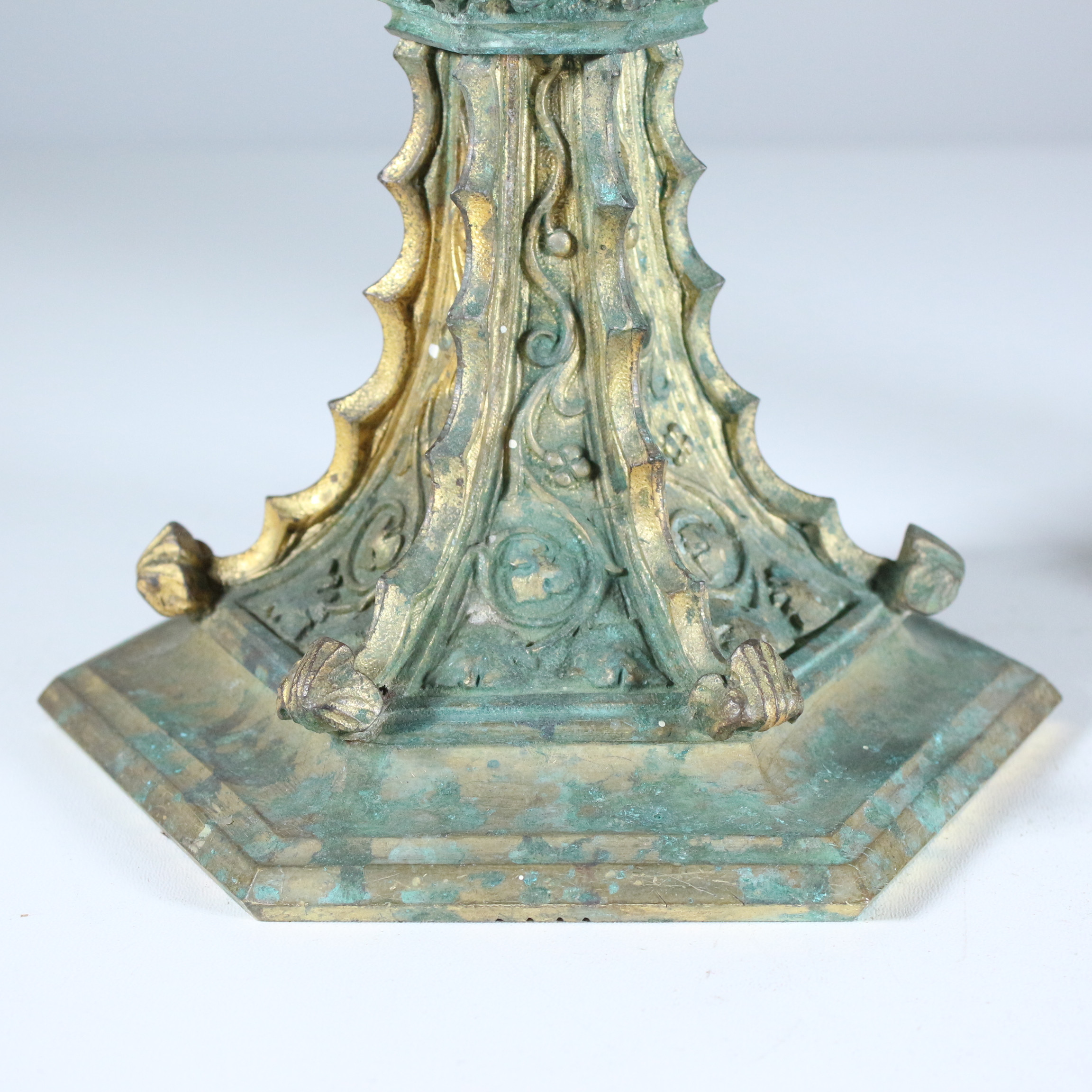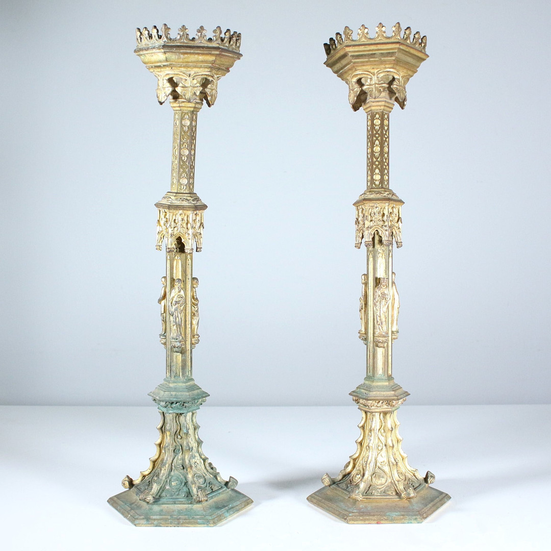 1930327. Antike Altarleuchter, massives Messing, 2 Stück.