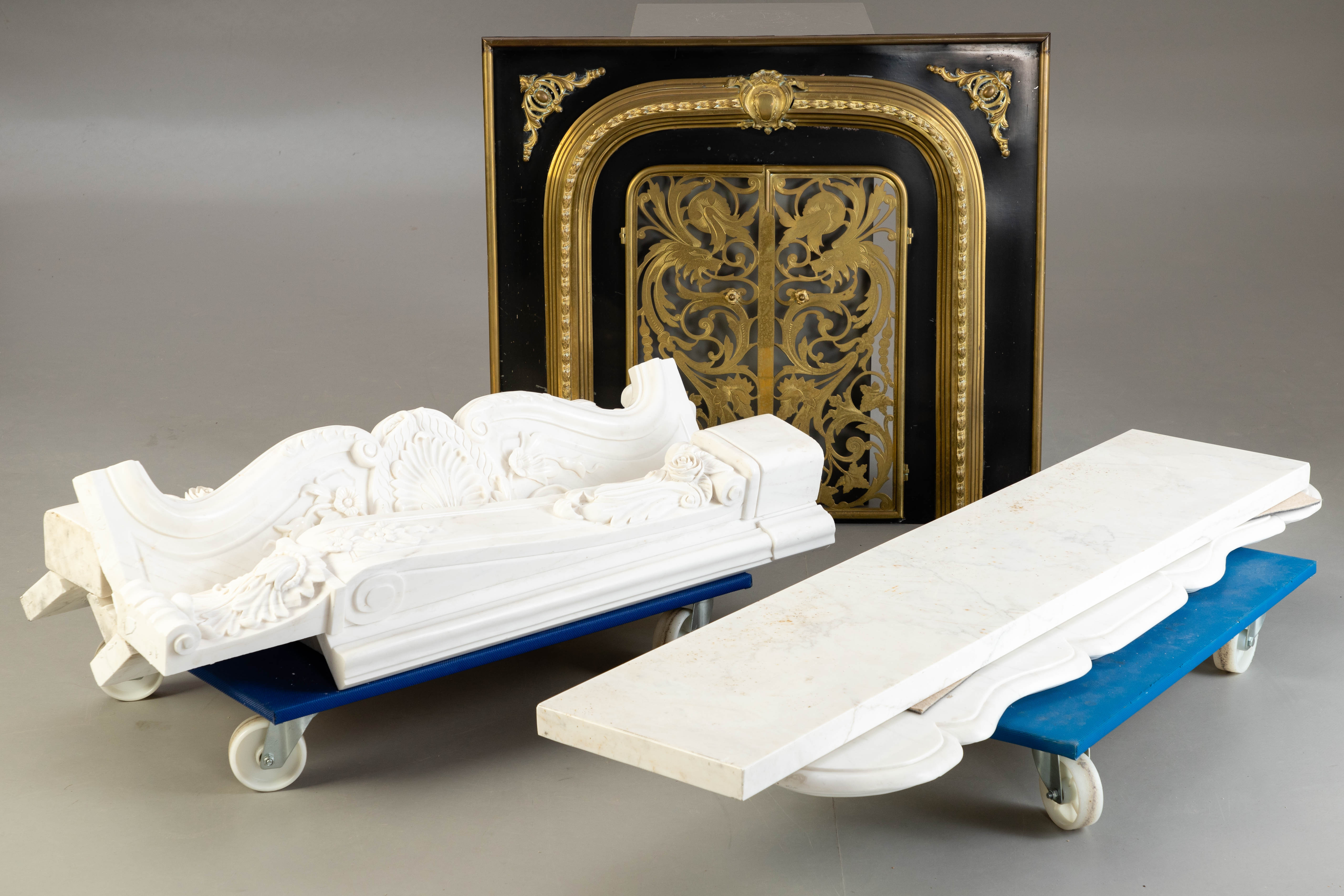 1931220. Marmor-Kaminumrandung mit Feuerschutz.