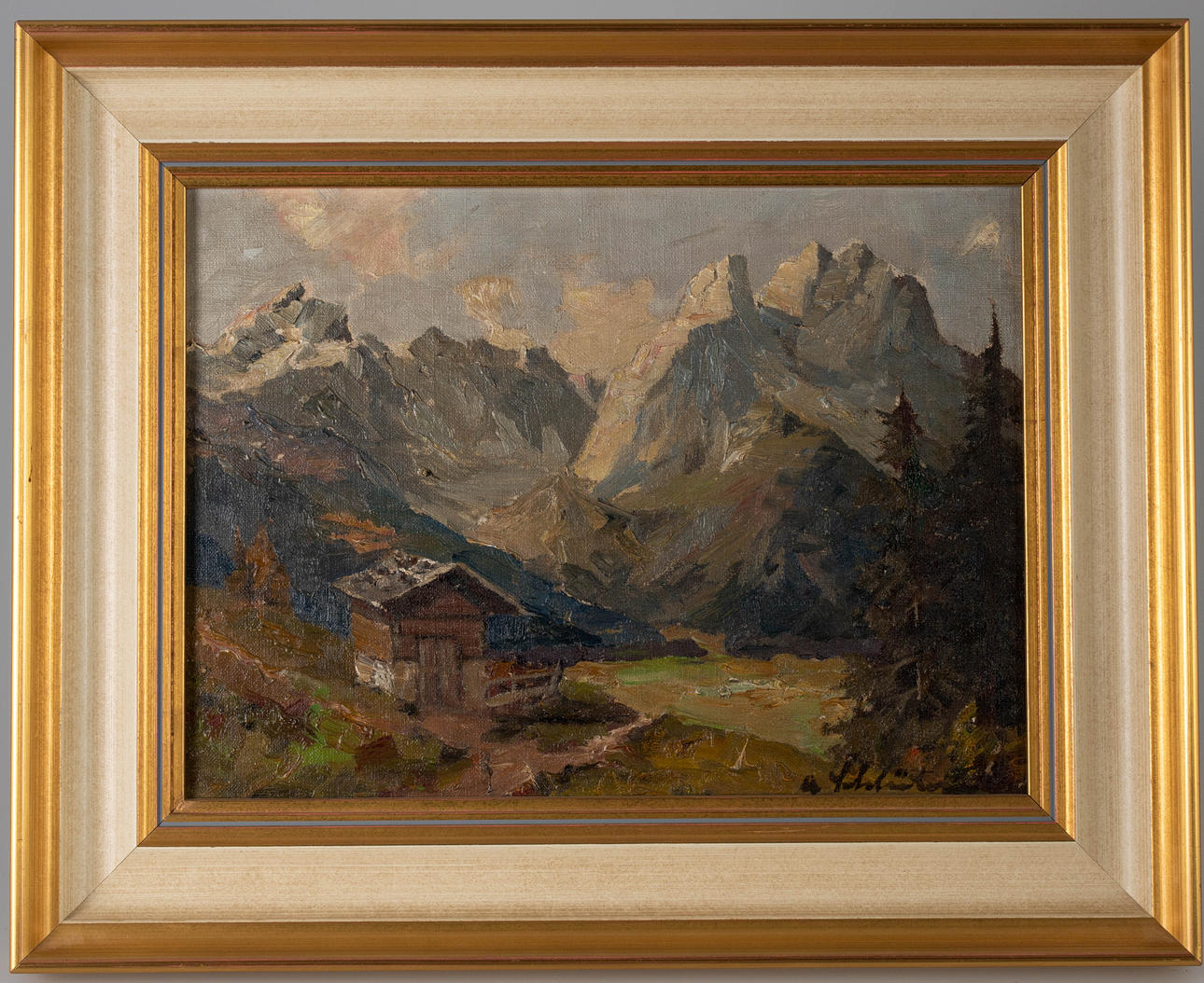 Adolf Schlüter (1890-?), Berglandschaft, Öl auf Leinwand, signiert, ca. 26 x 36 cm, mit Rahmen ca. 37,5 x 47 cm.