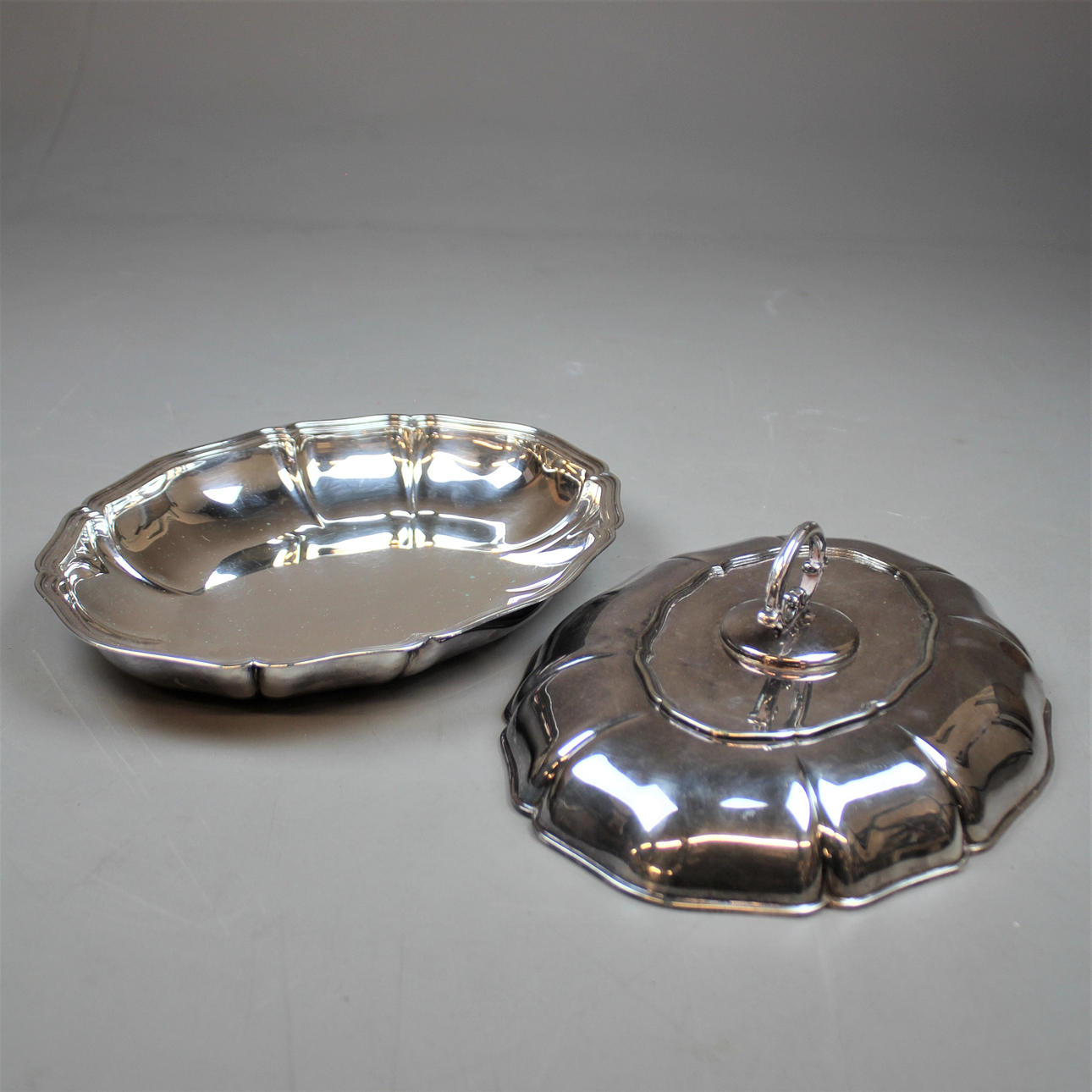 1932059. SERVIERPLATTE mit Deckel Silber.