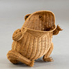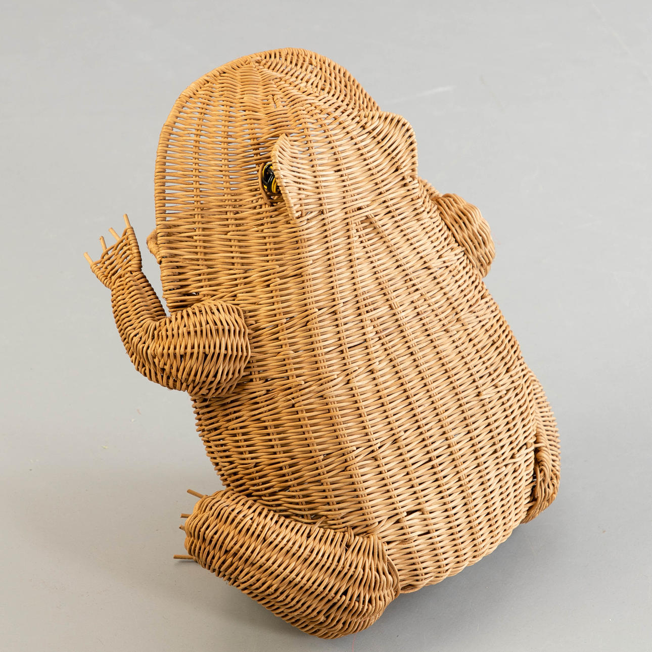 Papierkorb aus Rattan in Form eines Frosches. Augen aus Kunststoff. HxBxT: 46x40x34cm.