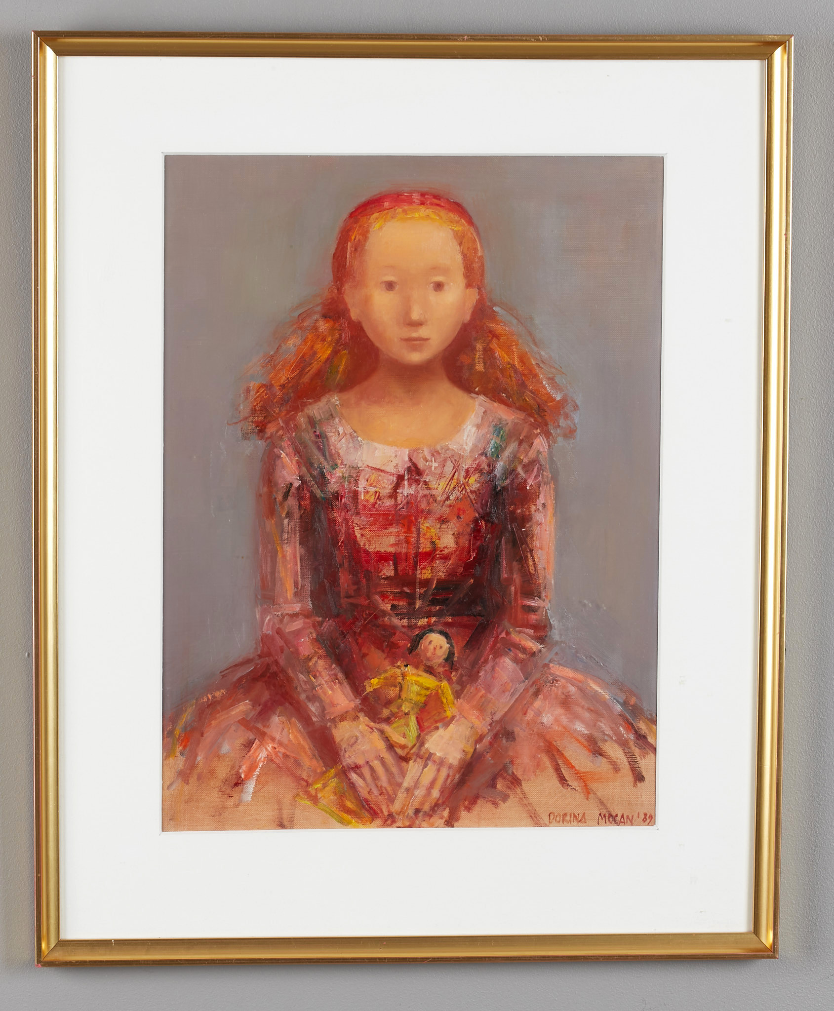 1941011. DORINA MOCAN. Mädchen mit Puppe, Tempera.