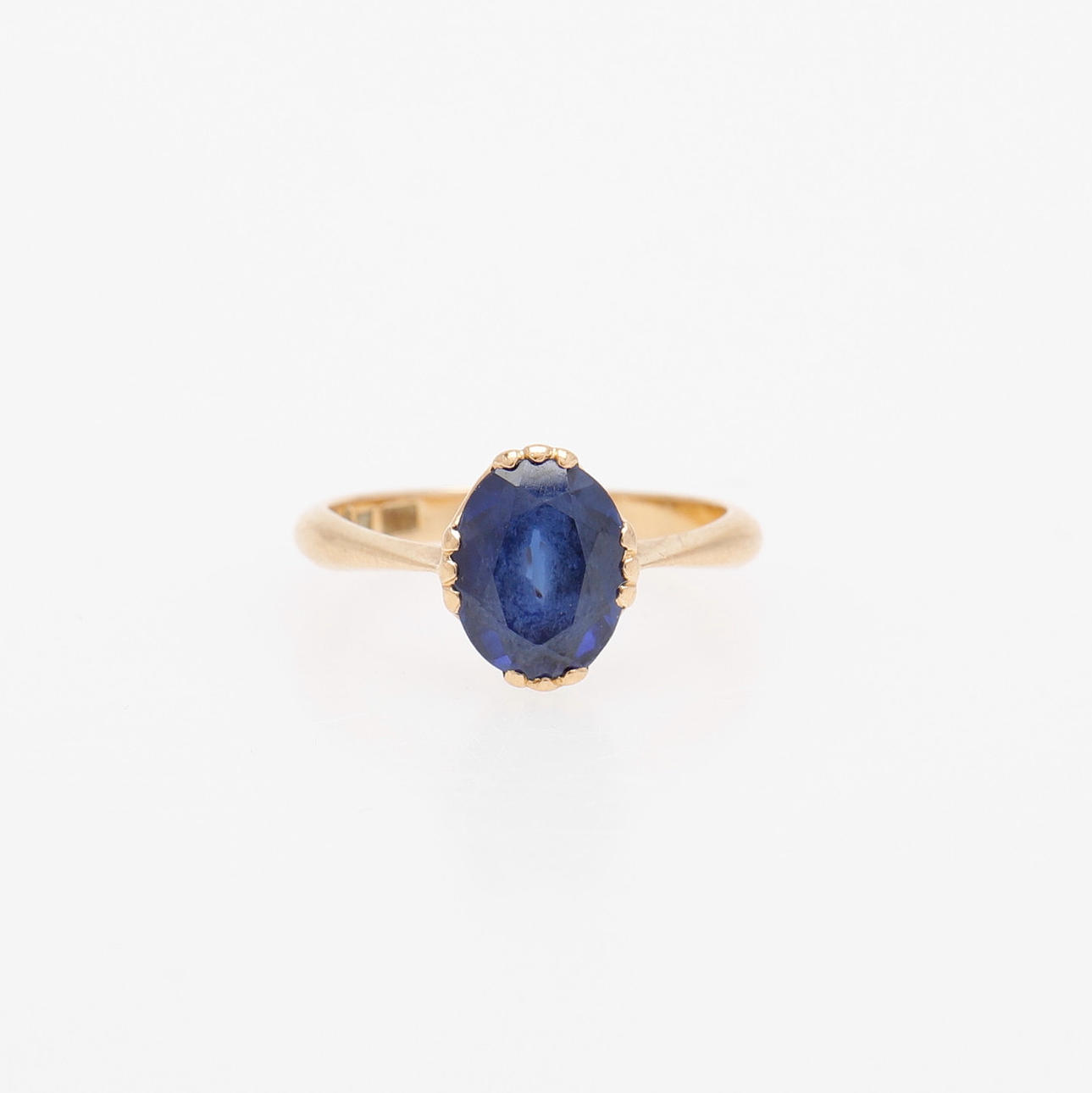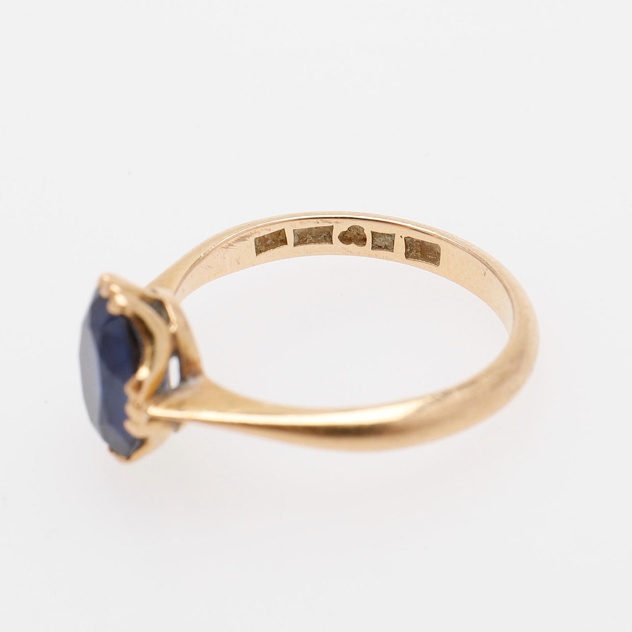 18 Karat Gold mit wahrscheinlich synthetischem Saphir, Gewicht 3 Gramm, Größe 17.