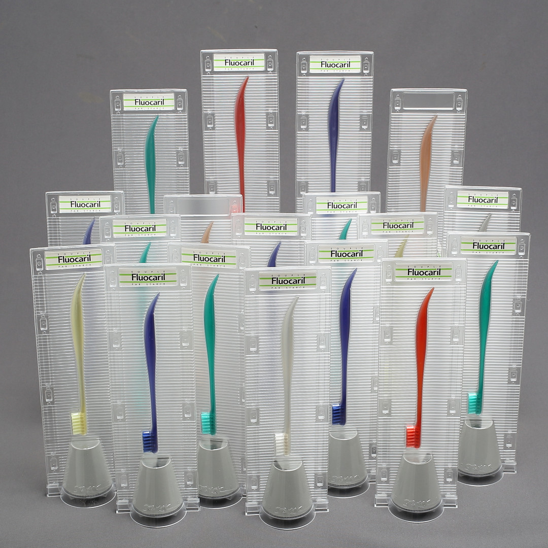 1947191. PHILIPPE STARCK. ZAHNBÜRSTEN, 18 Stück, Kunststoff, "Fluocaril.