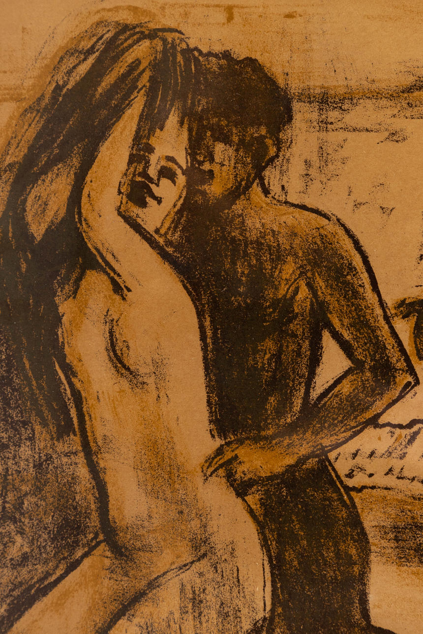 Hermann Max PECHSTEIN (1881-1955), Die Werbung, Farblithographie, 1947, signiert und datiert, ca. 30 x 39 cm, hinter Passepartout und Glas gerahmt, mit Rahmen ca. 46 x 53 cm.