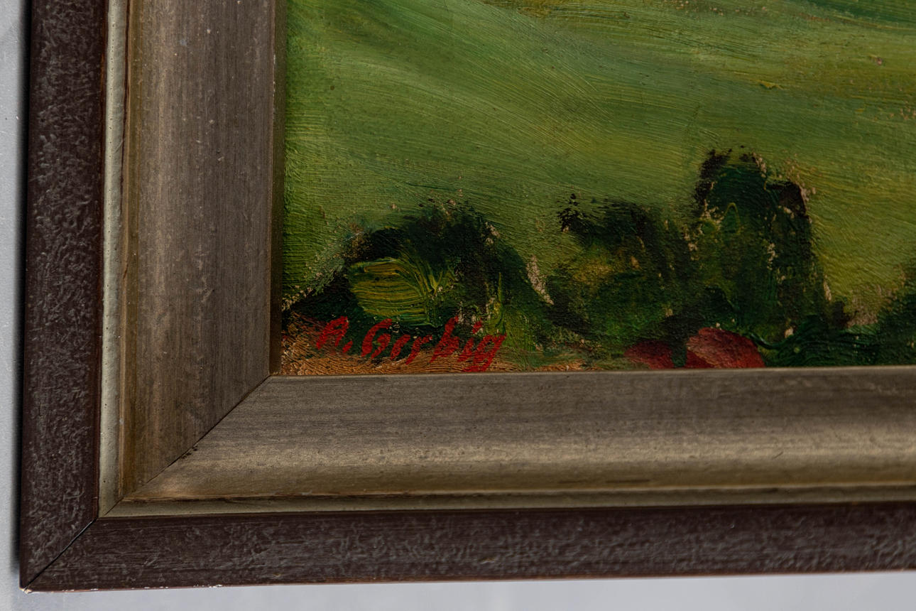 Alexander Gerbig (1878-1948), Wiesengrund, Öl auf Leinwand, signiert, rückseitig betitelt und bezeichnet 'No. 503', ca. 46 x 66 cm, mit Rahmen ca. 52 x 72 cm.