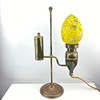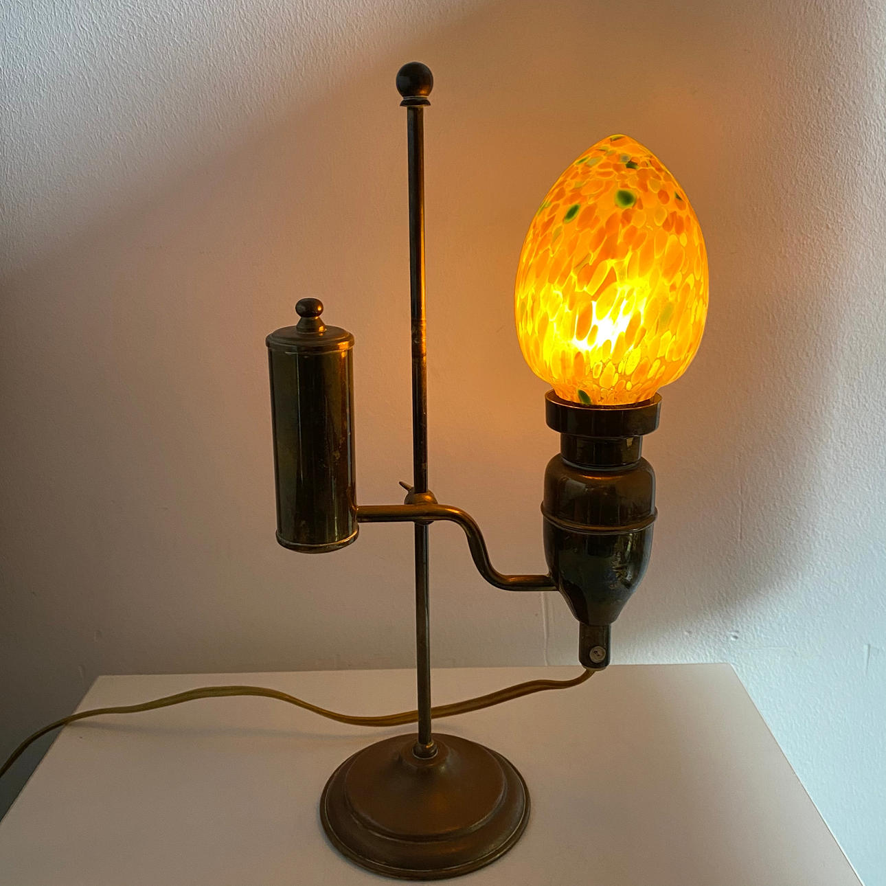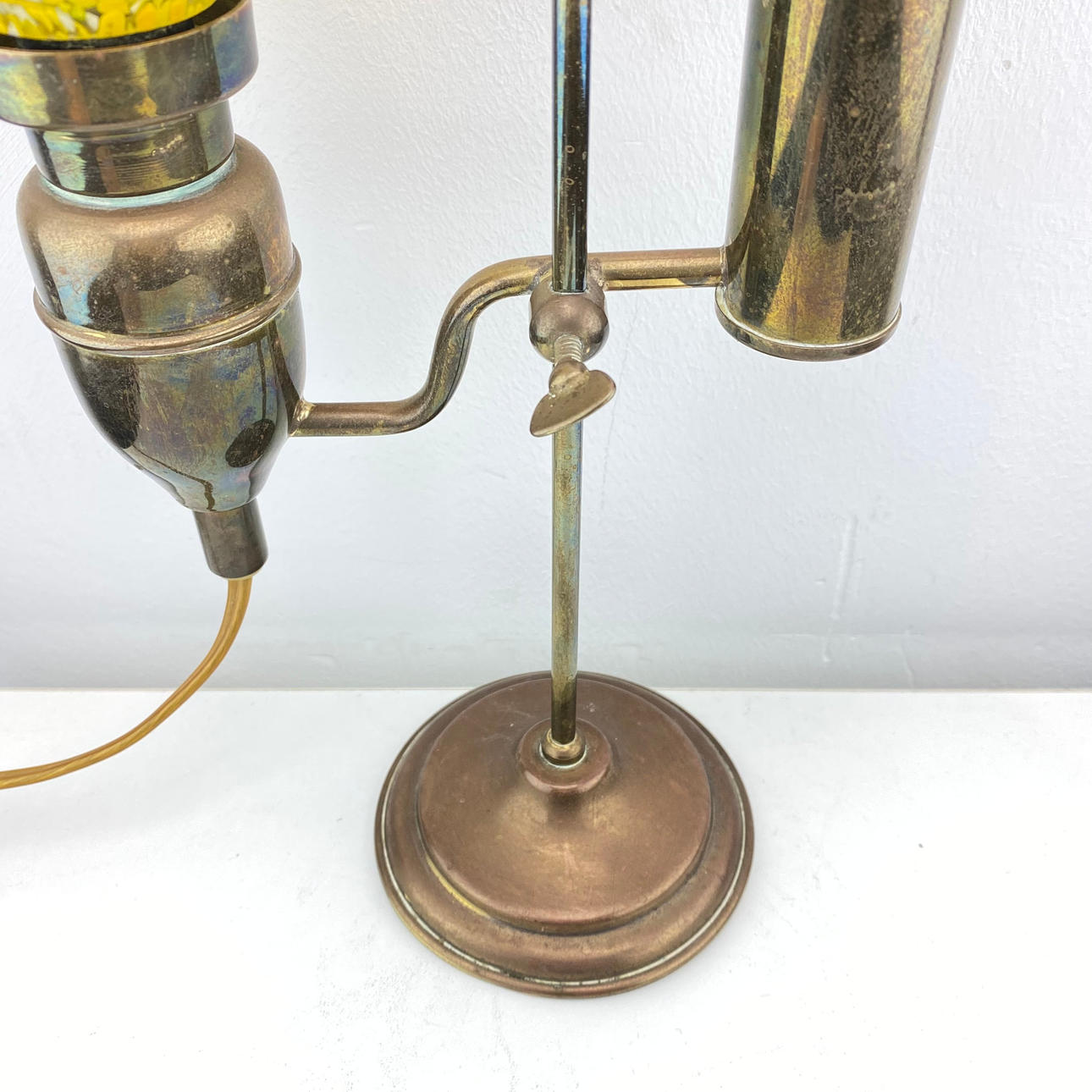 Antike Tischlampe, Höhenverstellbar, Messing mit Glasschirm.