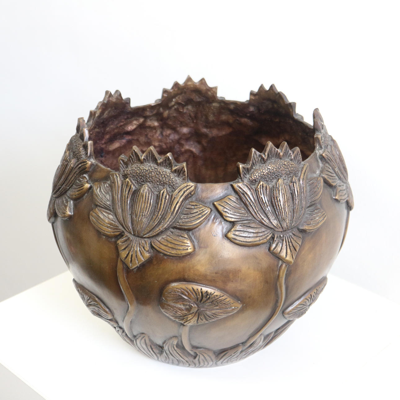 Jugendstil Stil Blumen- Übertopf aus Bronze.