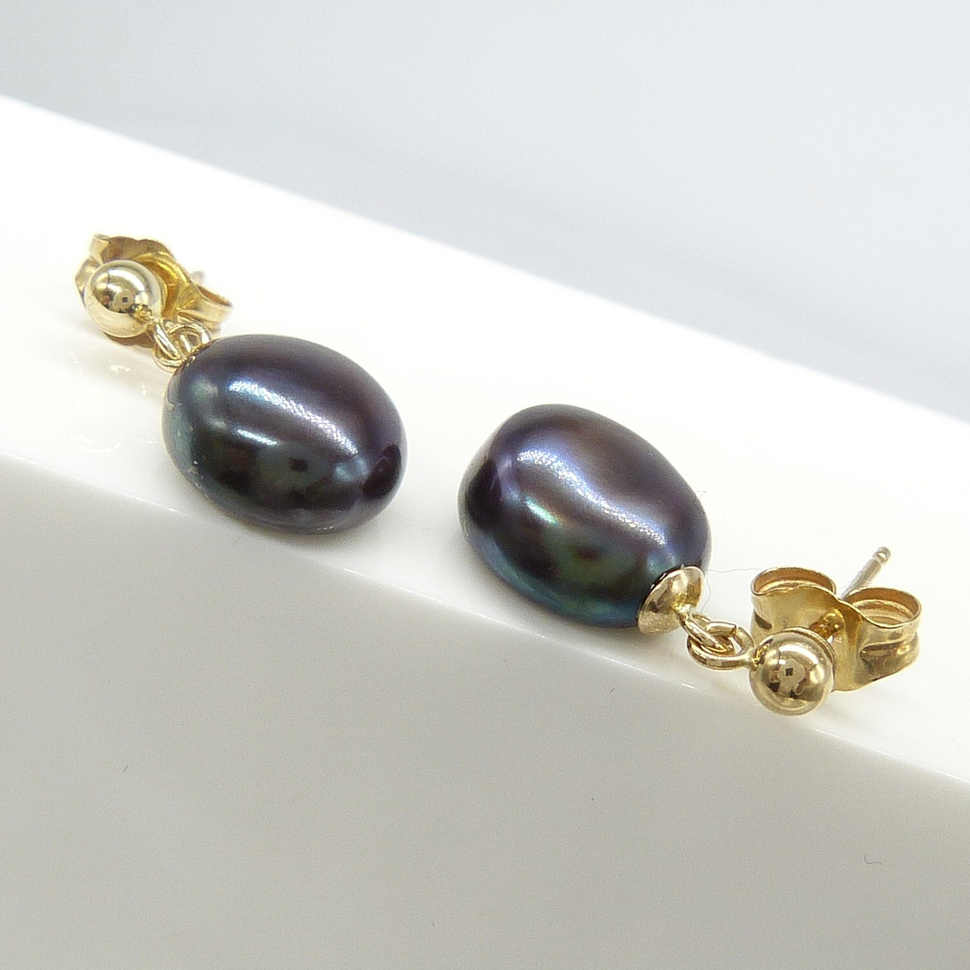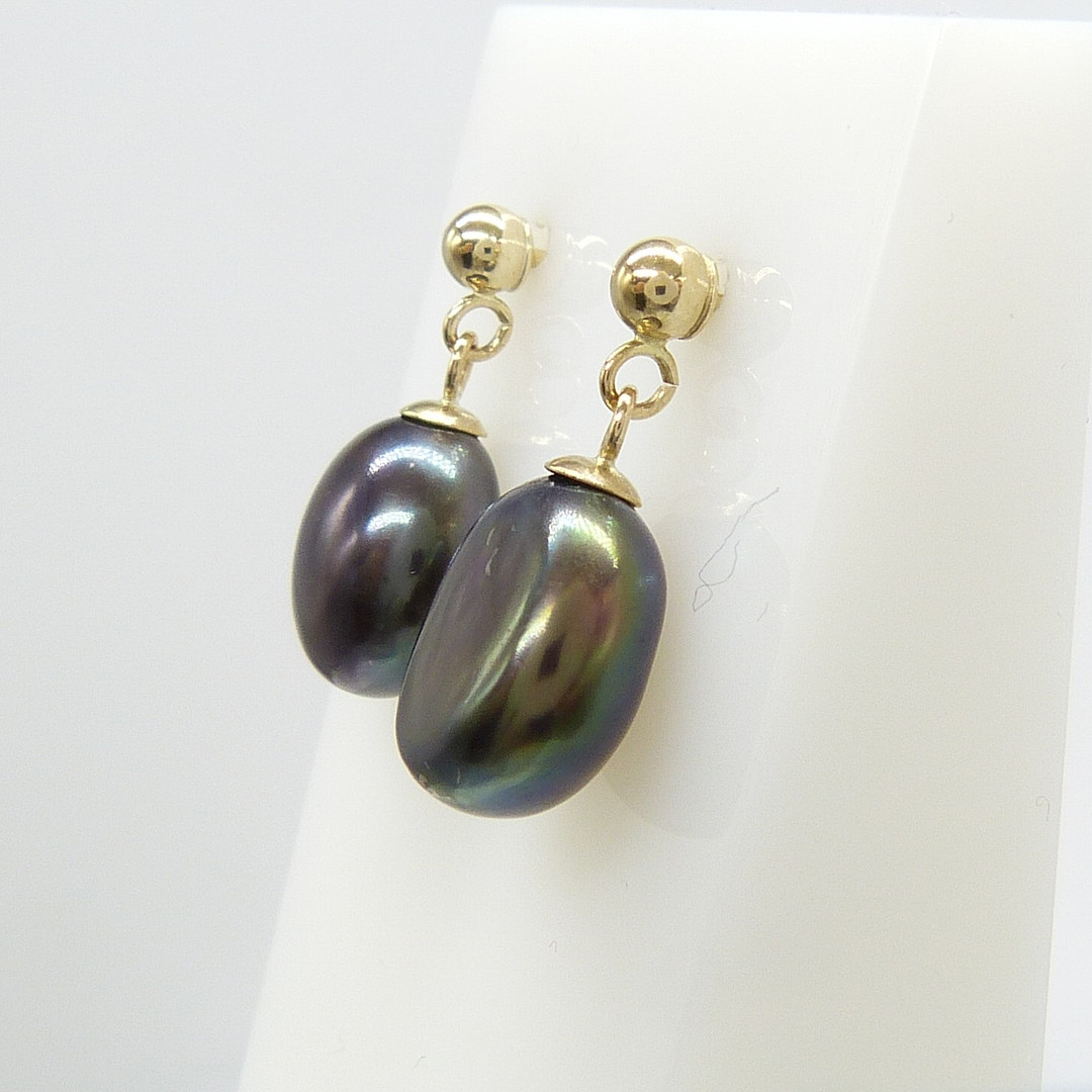 1960595. OHRRINGE MIT SCHWARZEN PERLEN UND GOLD.