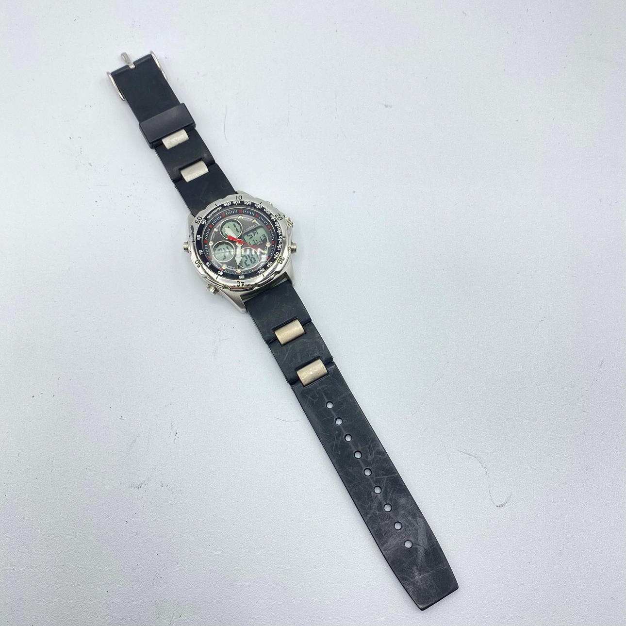Quarz Taucher Chrono Armbanduhr mit Digitalen Funktionsanzeigen, Navy Gummiarmband.