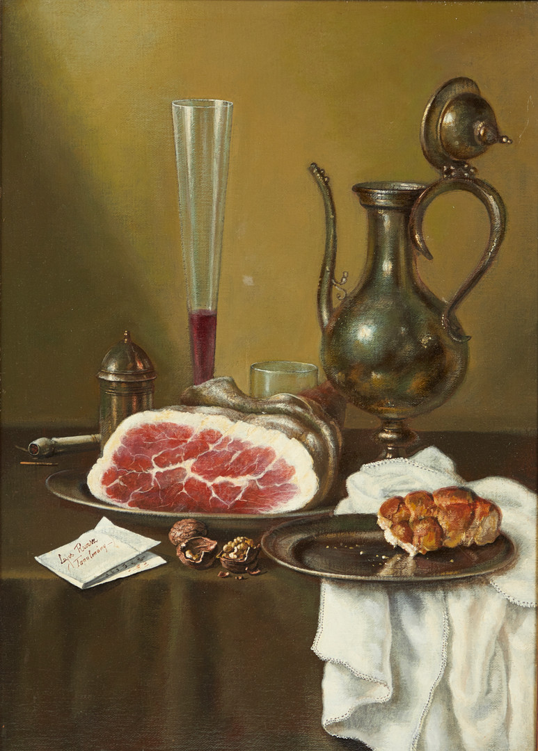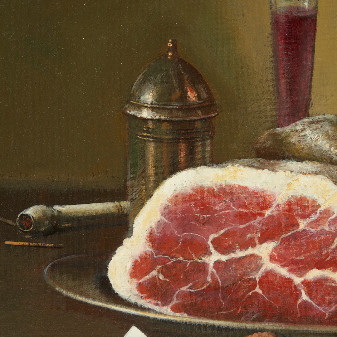 1976013. LAJOS RAVASZ. Gemälde, Stillleben mit Schinken.