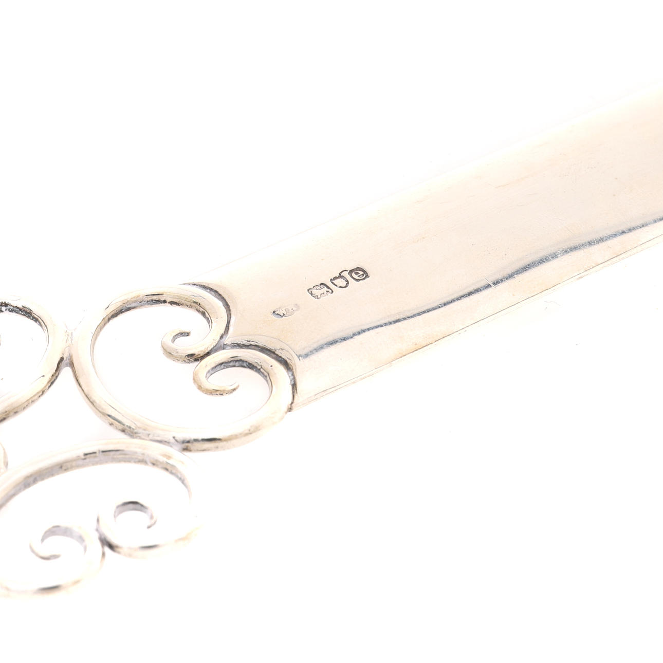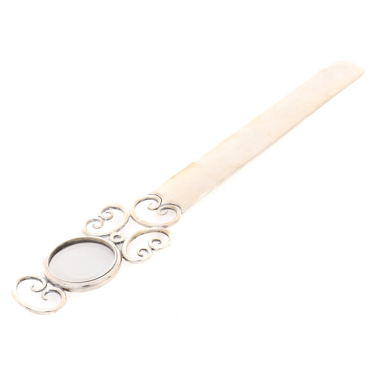 William Hornby, London 1900, das offene C-Scroll-Kapitel zentriert durch eine runde Lupe, 29,5 cm lang, 108,5 g, 3,49 Unzen brutto Englische Country House Collection.