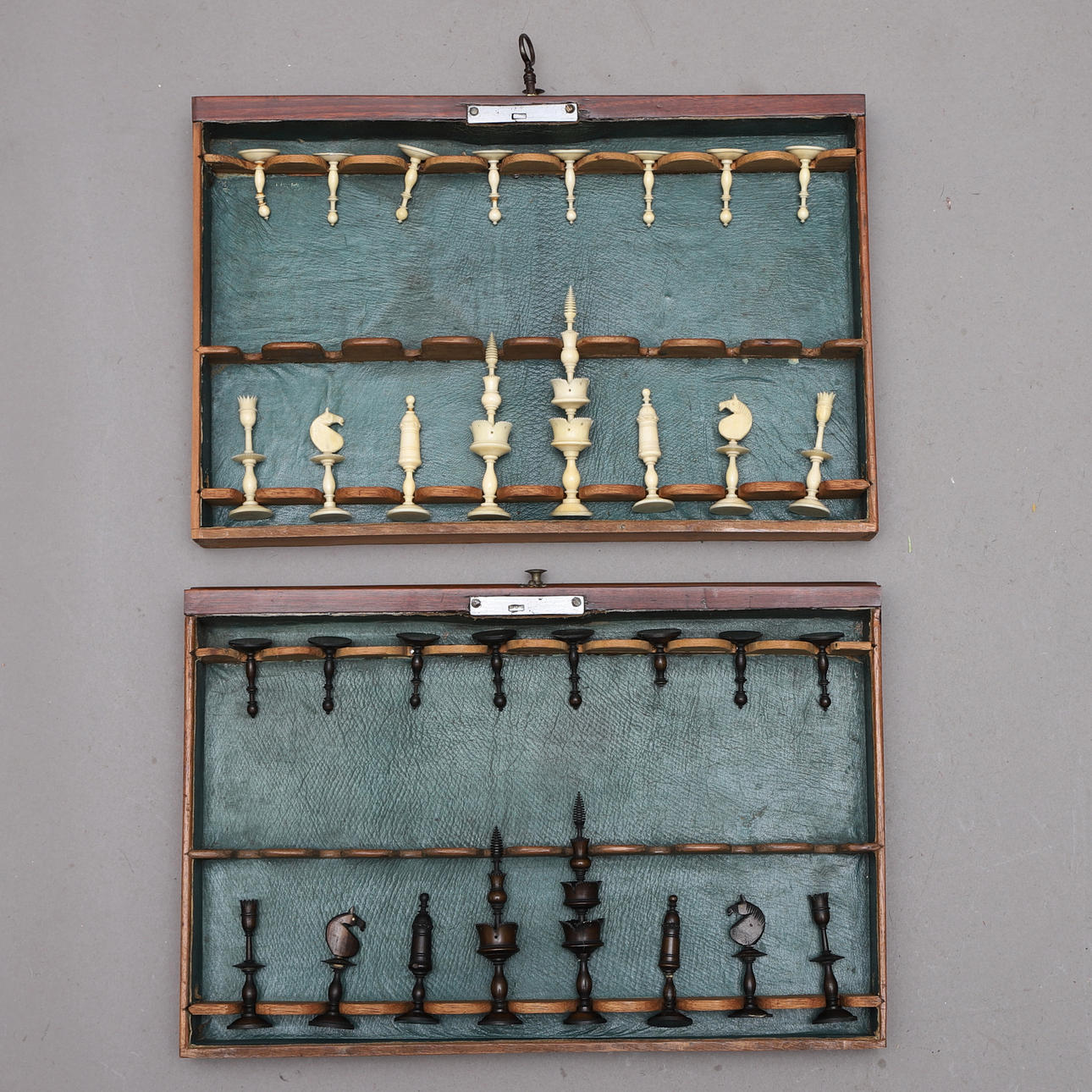 2 abschließbare Boxen mit Schachfiguren.