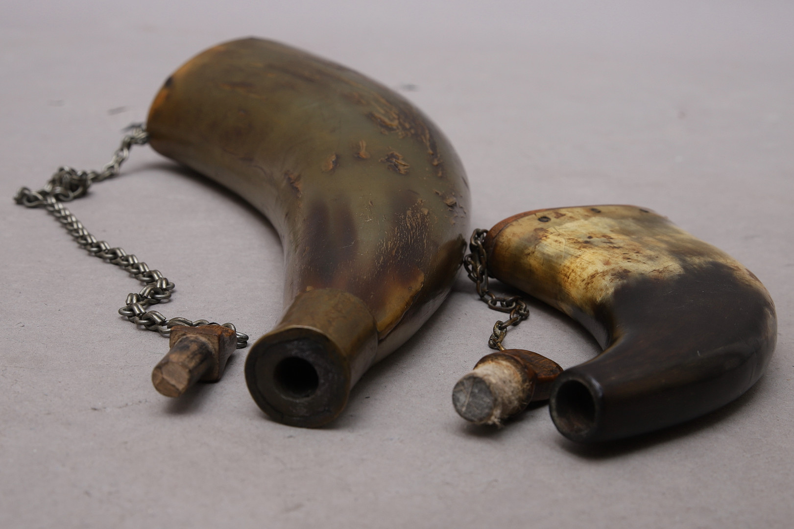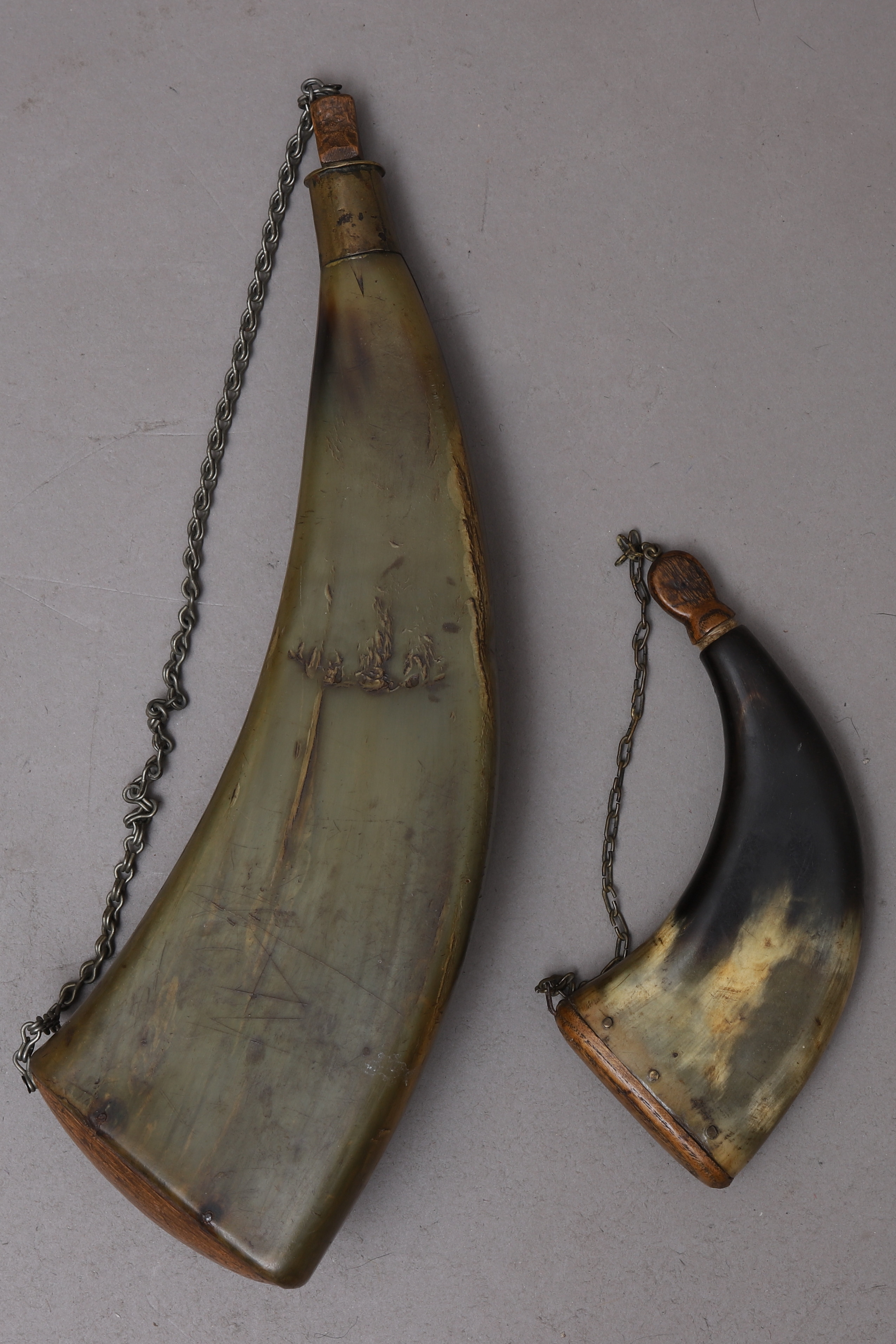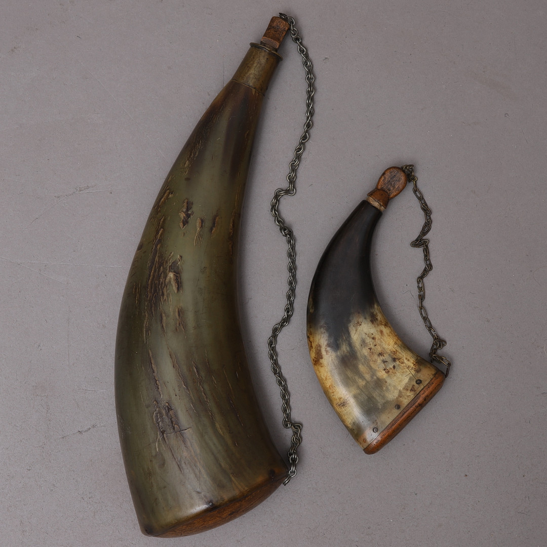 1985126. PULVERHORN, 2 Stück, Knochen & Holz.