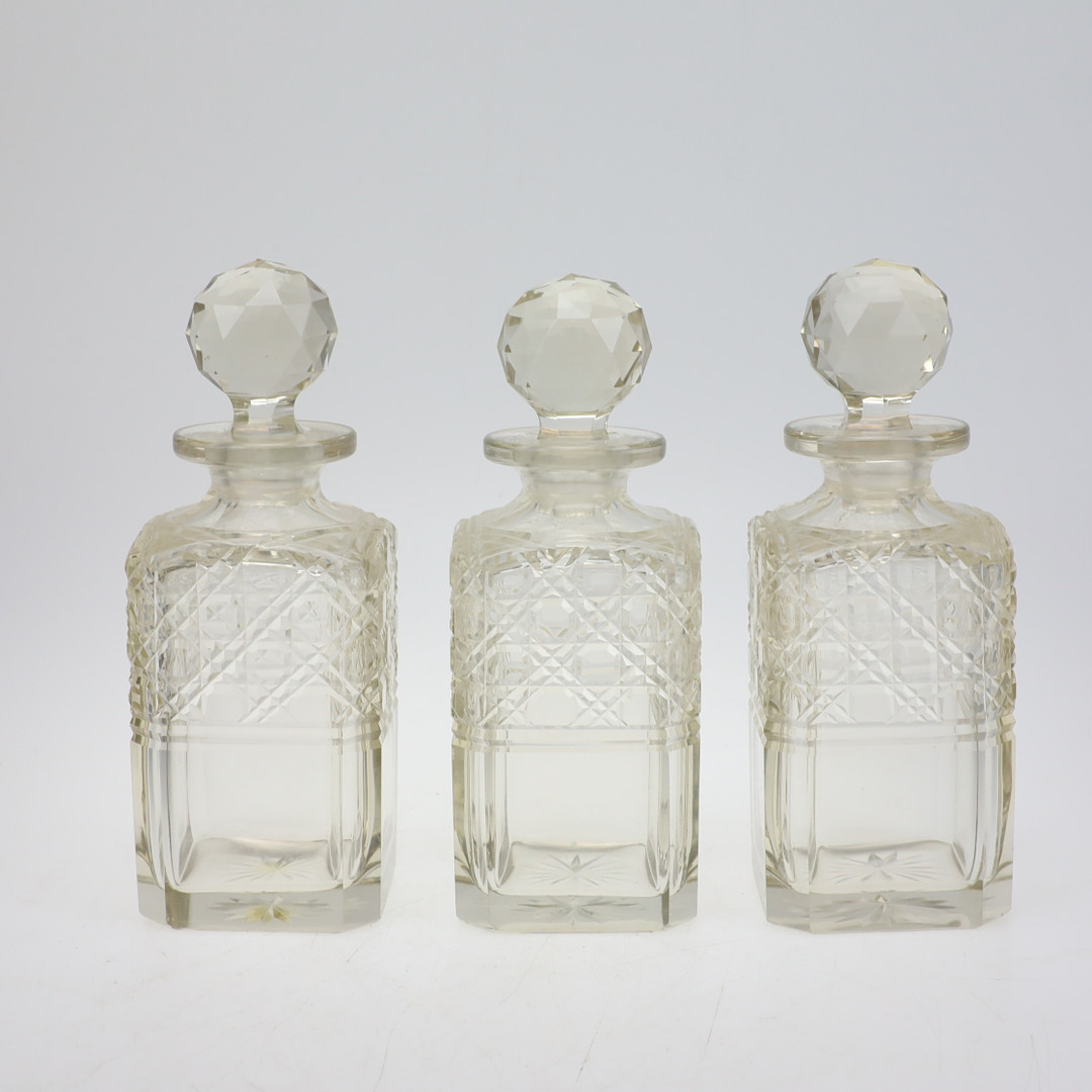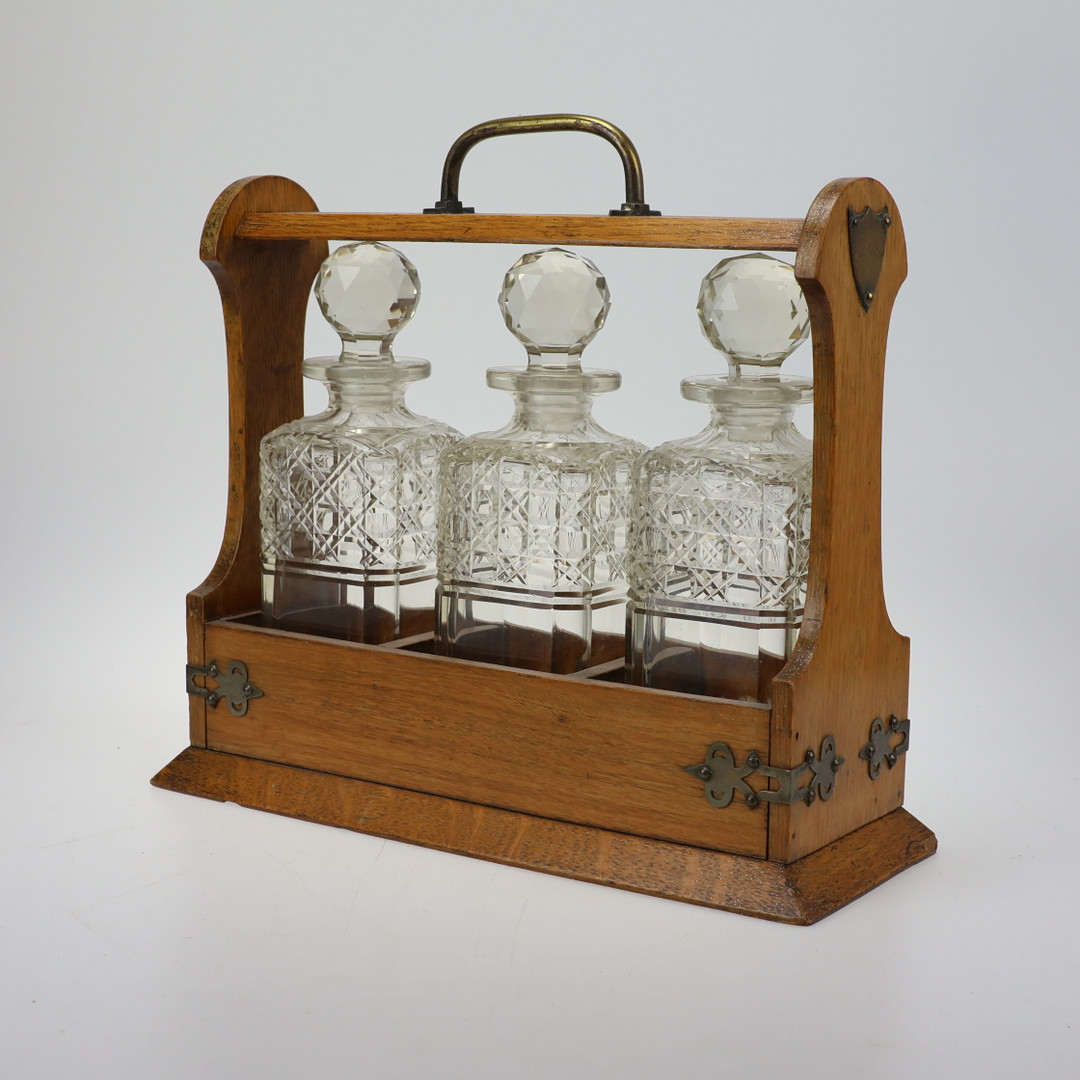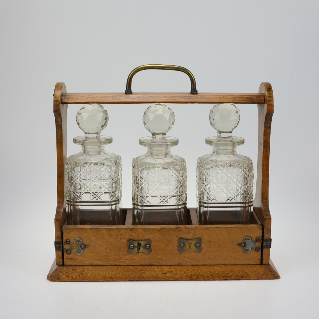 1985176. TANTALUS, Karaffe, 3 Stück, im Gestell, Mitte 20. Jahrhundert.