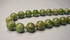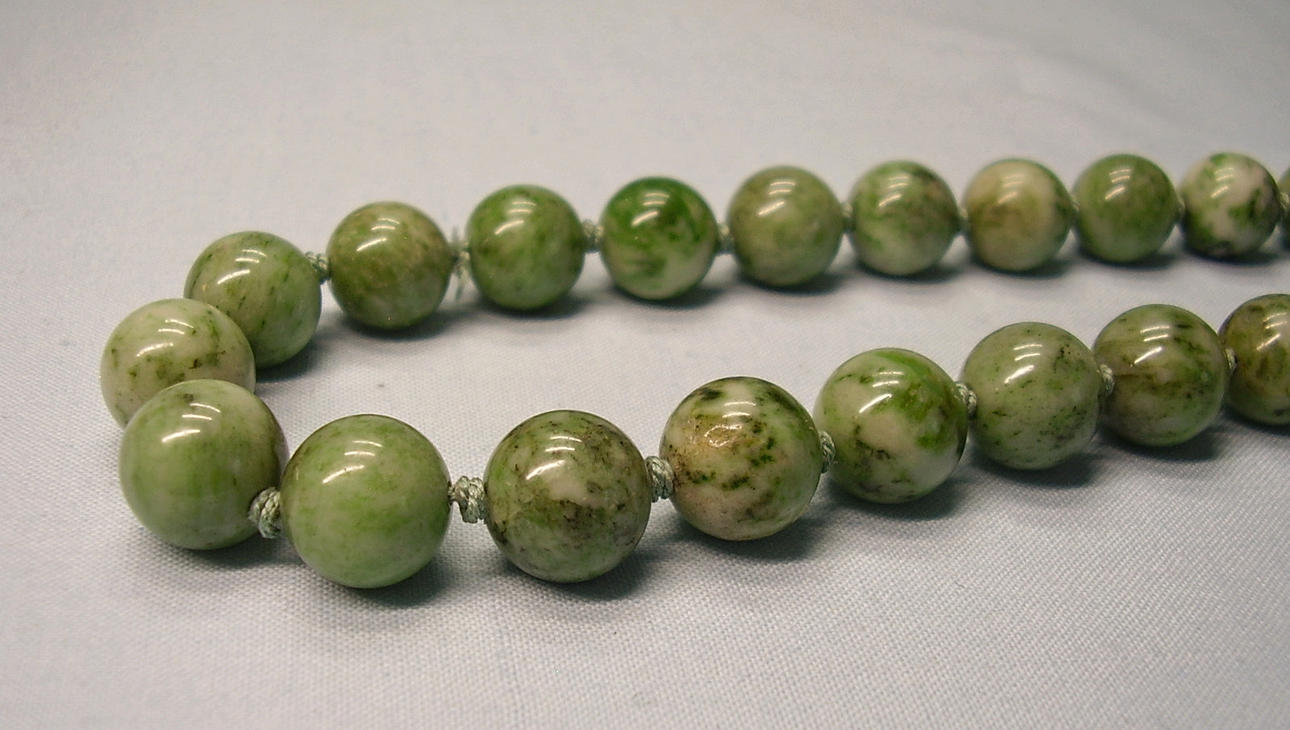 Große Kugeln aus hellgrüner, gemaserter Jade, einzeln geknotet.