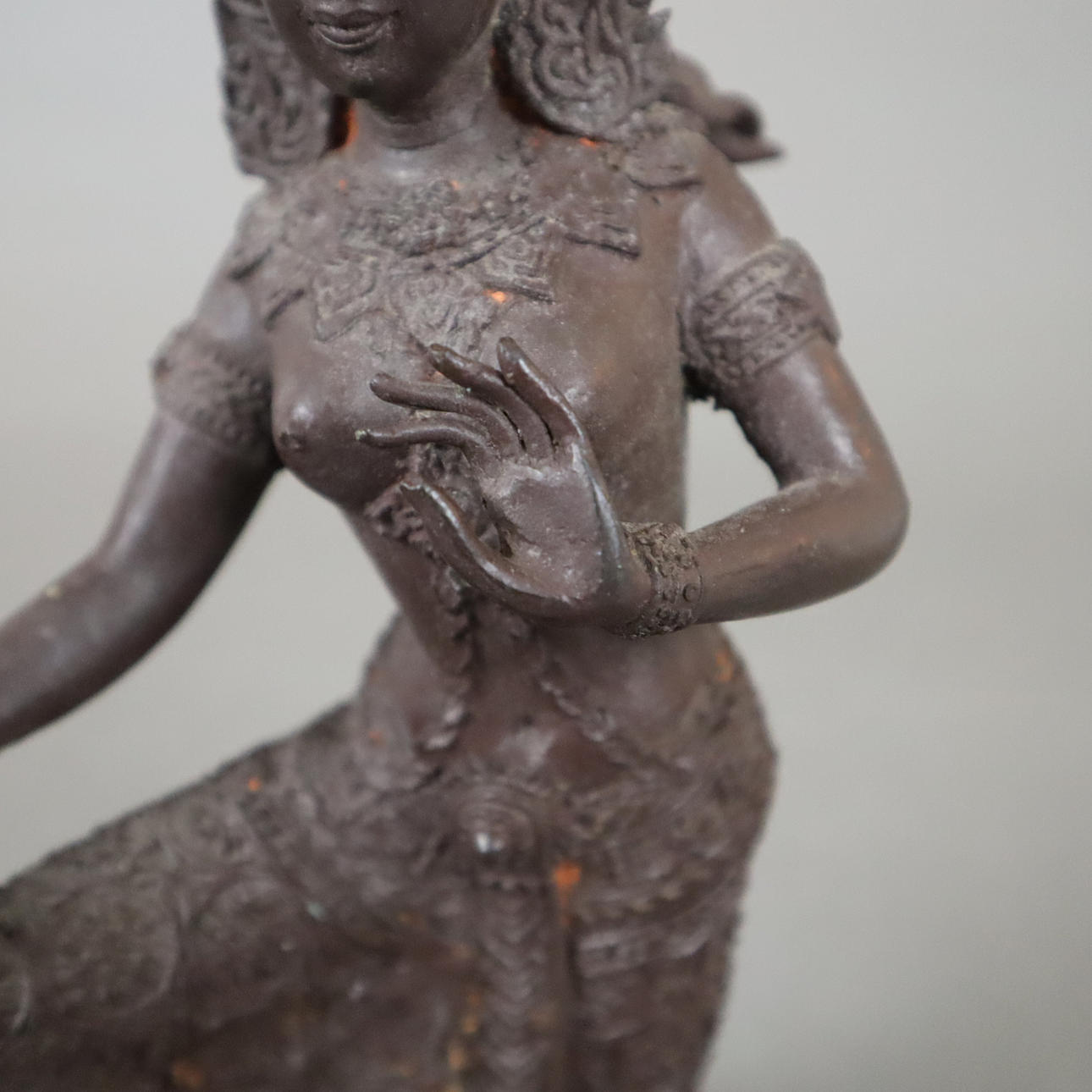 - TEMPELTÄNZERIN - Bronze, braun patiniert, Thailand.