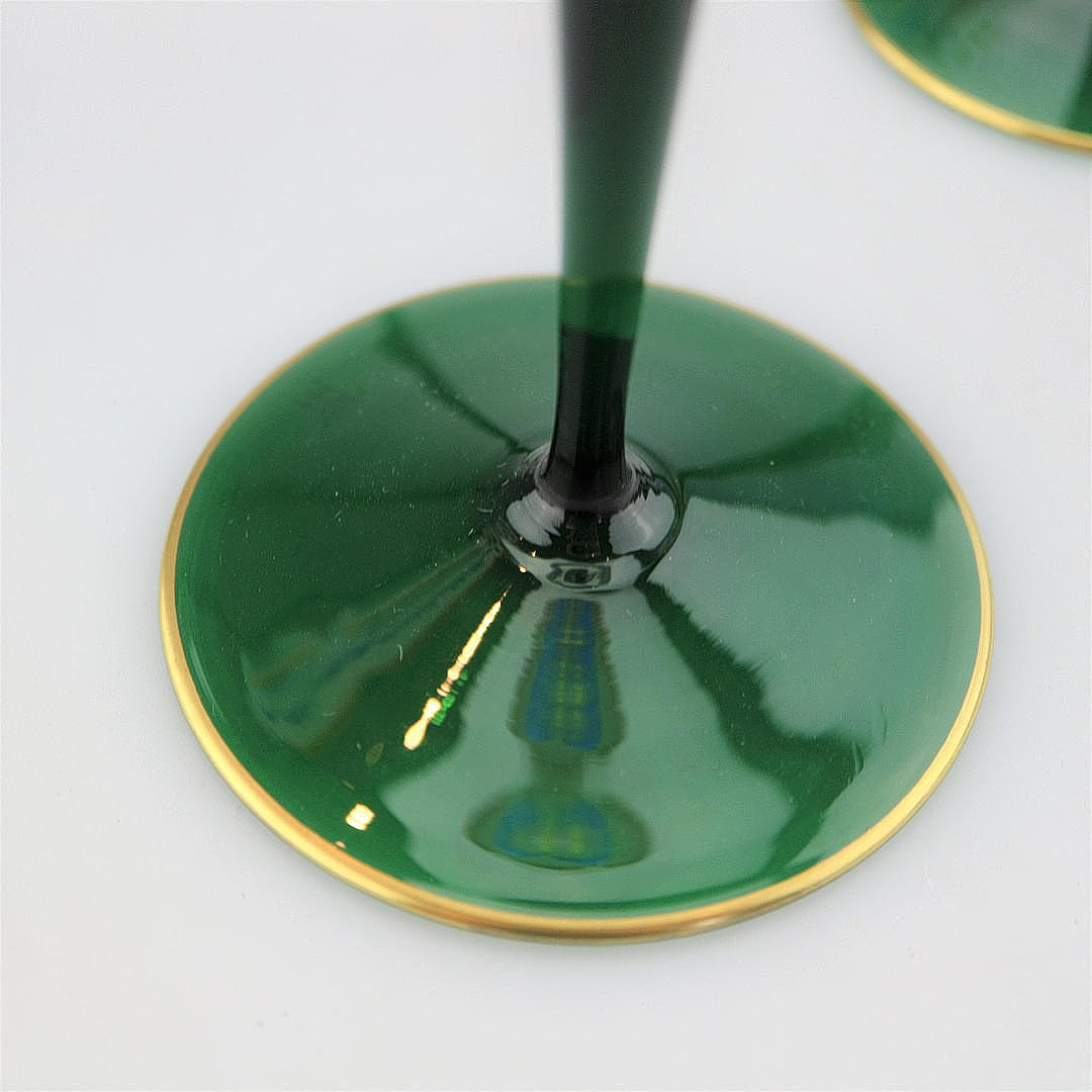 Theresienthal/Zwiesel Gläser Set, im Jugendstil Stil, 6-teilig, signiert, Fuß- und Lippenrand vergoldet, polychrome Emailbemalung, Höhe: 21,5 cm.