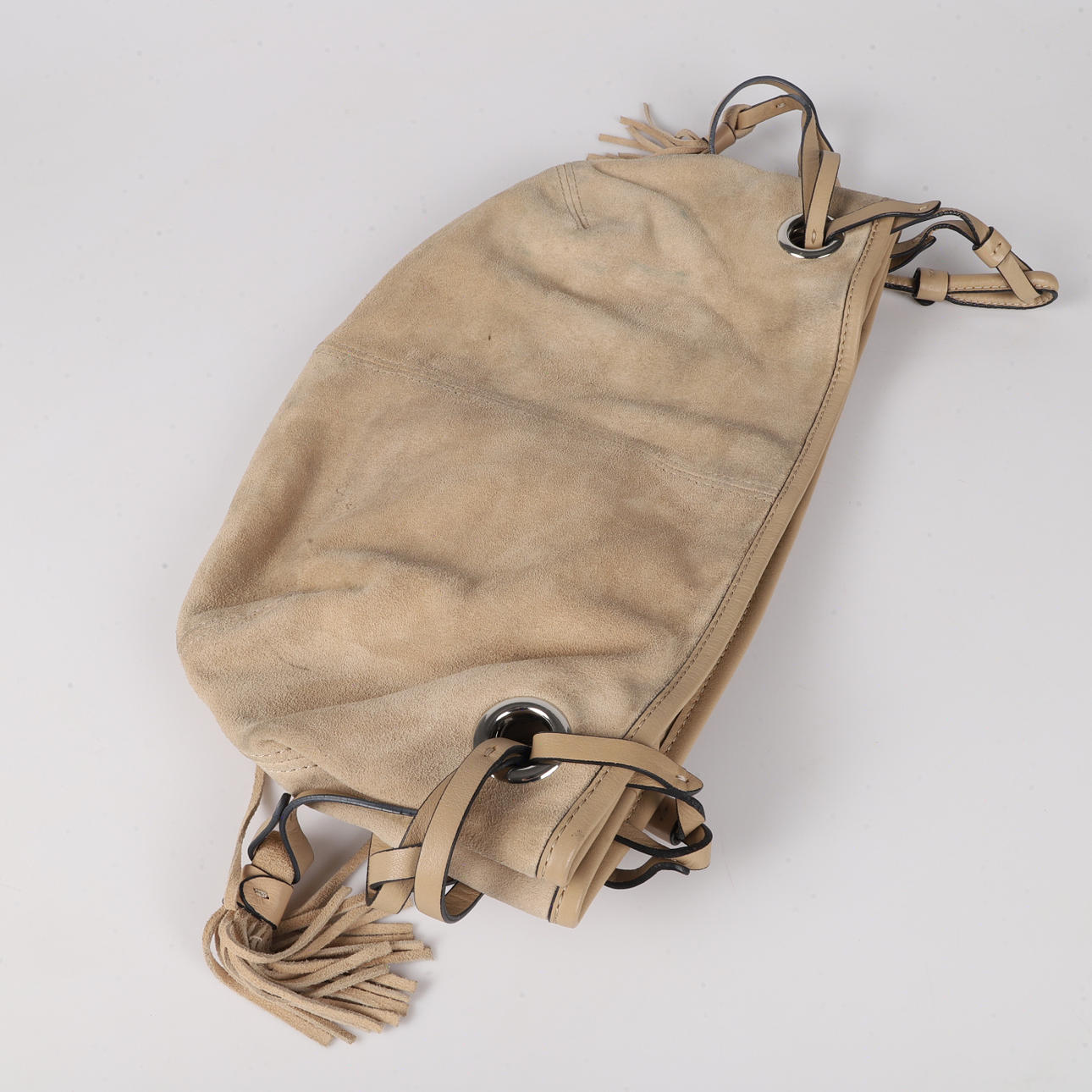 1989930. TASCHE, beiges Wildleder/Metall, Sequoia, Paris.