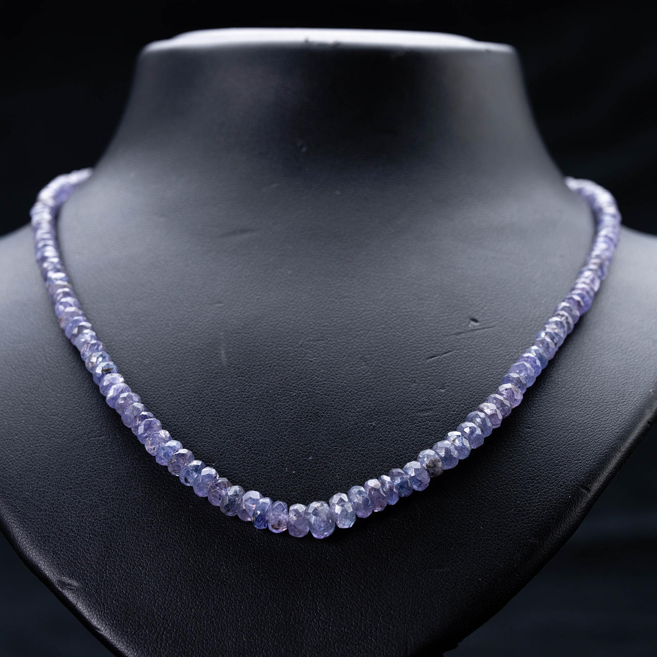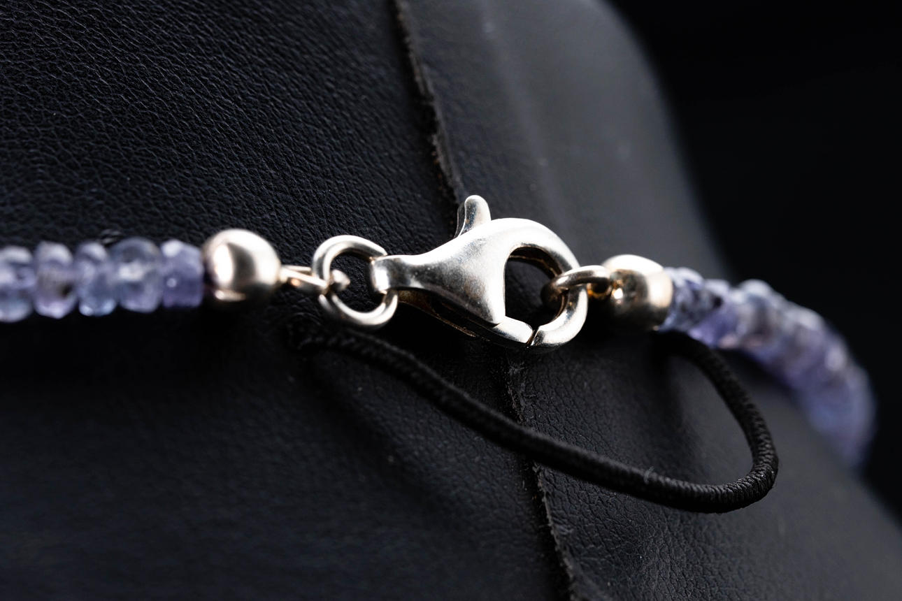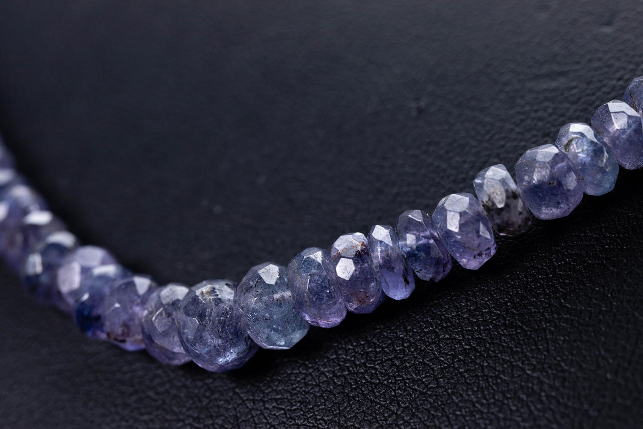 Halskette, facettierte Tansanit Perlen, aufgezogen, mit silbernem Verschluss