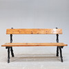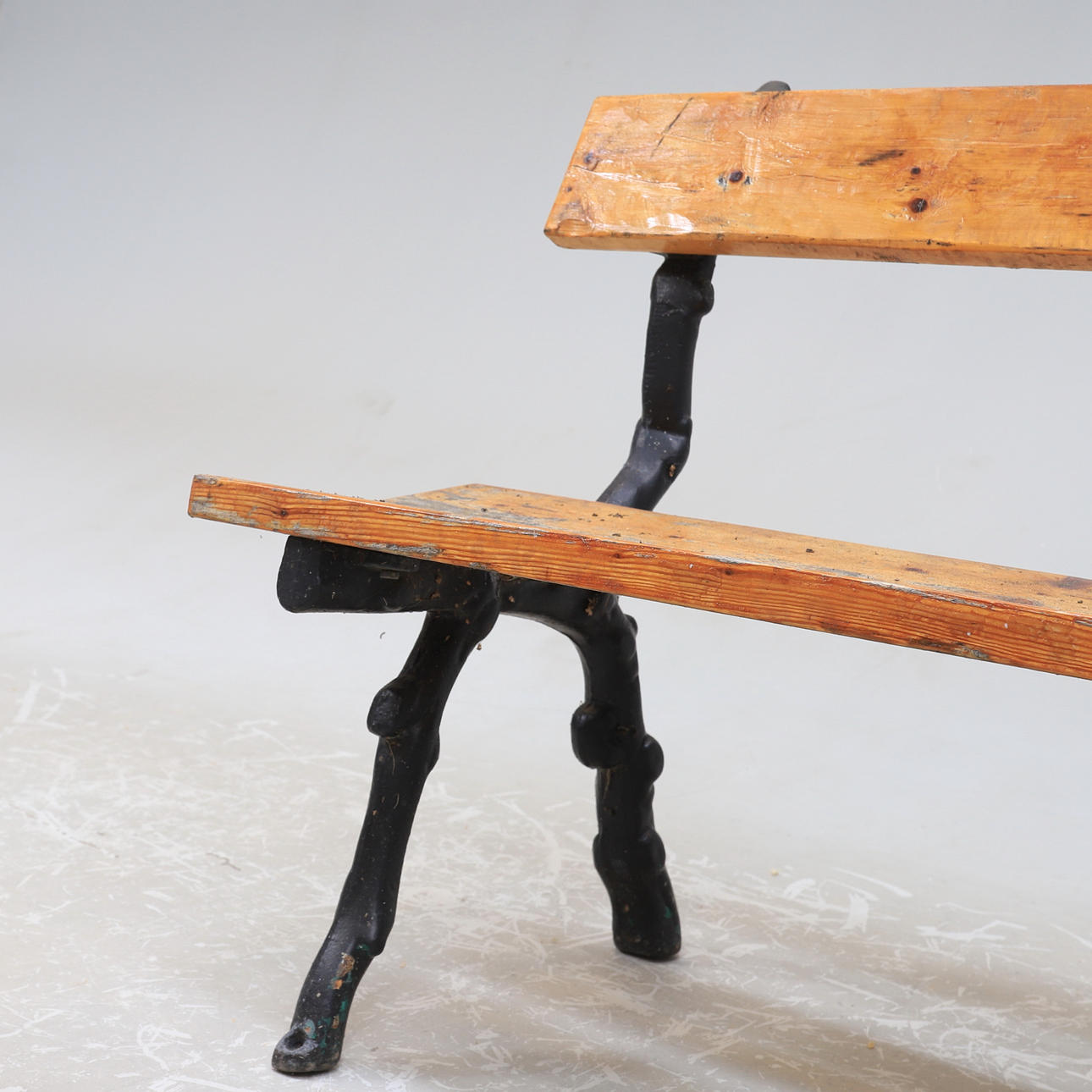 Giebel aus schwarz lackiertem Eisen. Holzlatten. Länge 150. Höhe 80 cm.