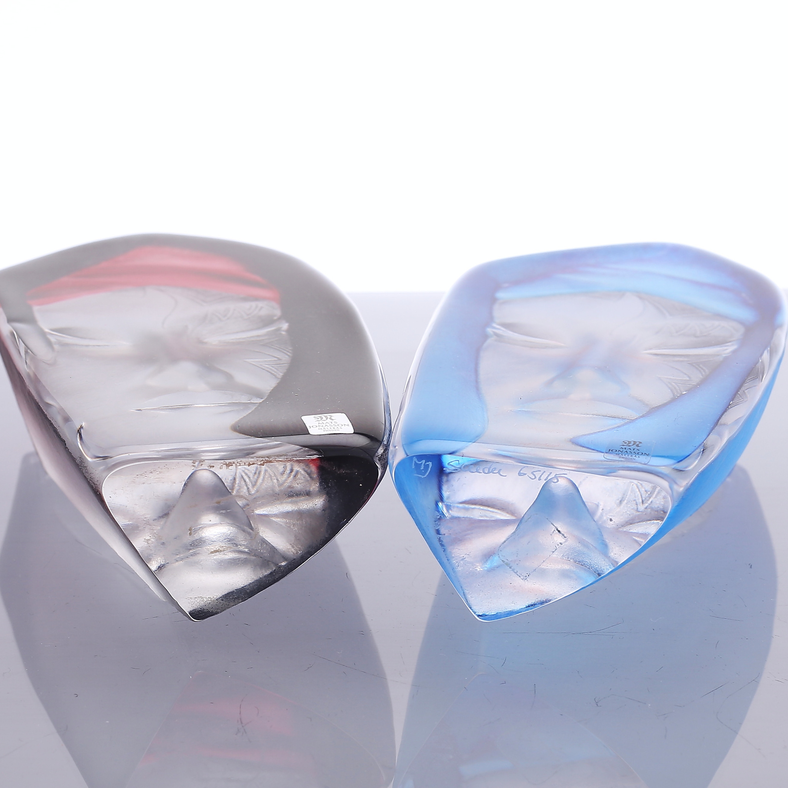 2000706. MATS JONASSON. "Batzeba", Glasblock, 2 Stück, Målerås, signiert.