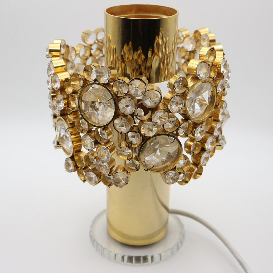 Murano Glas Lampe, made in Italy, feuervergoldet, mit geschliffenen Kristallen, mit Glasfuß, Höhe: 25 cm, Durchmesser: 18 cm.