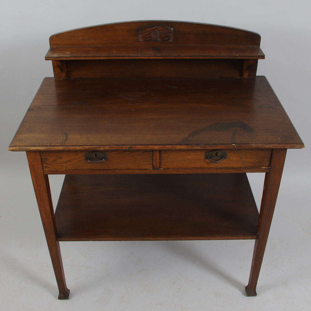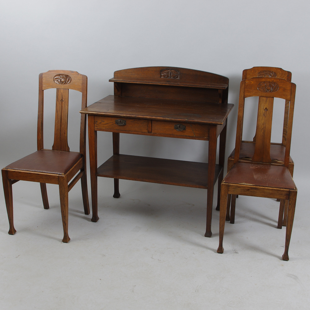 200483. SPENDE UND 3 STÜHLE, Eiche, Jugendstil.