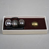 Höhe 3 cm, zugehöriger Lederbeutel in Originalverpackung enthalten, außerdem 3 Metalleier zum Kühlen von Getränken.