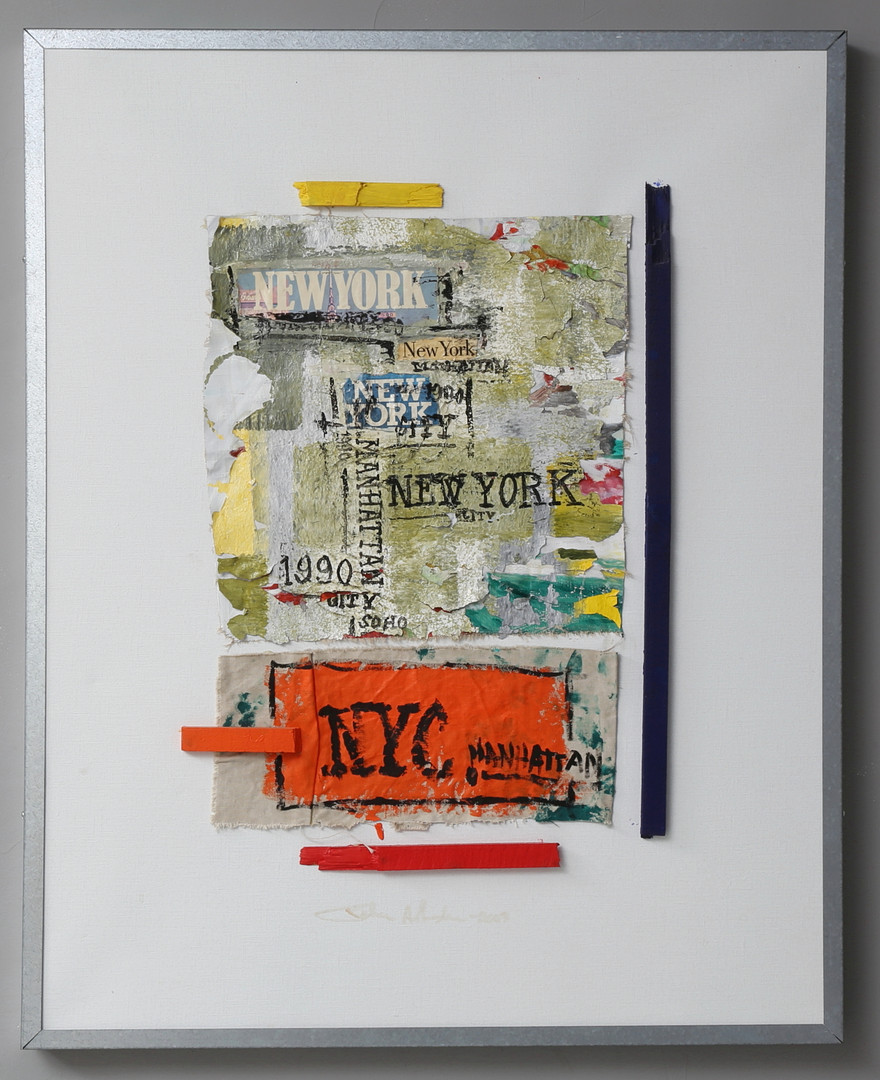 2009184. PETER ATTACK. Collage auf Leinwand, signiert.