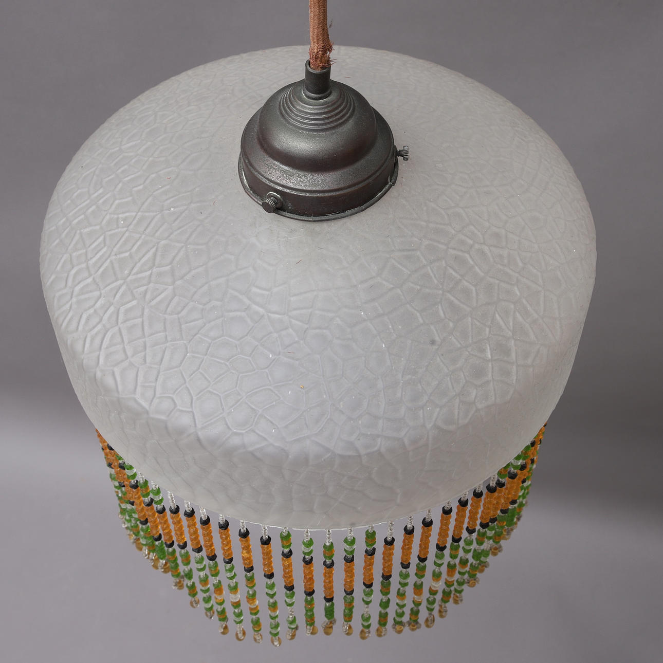 2012232. DECKENLAMPE mit Perlenfransen, Glas, 1900er.