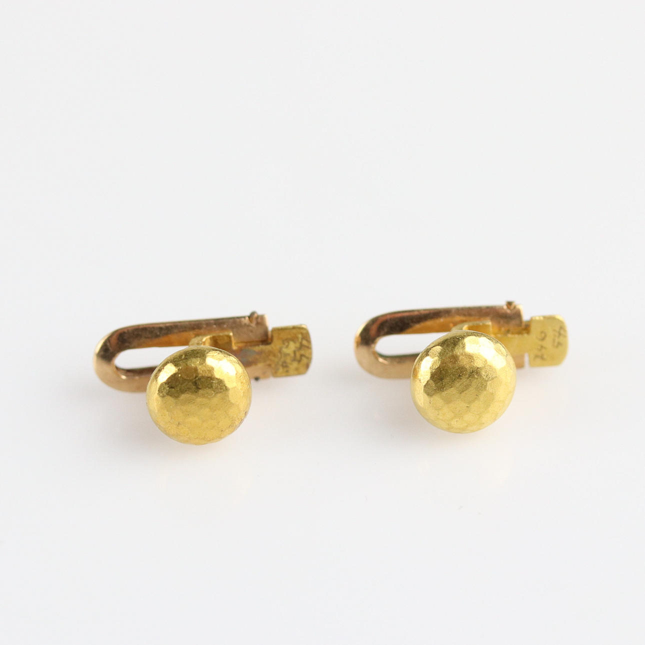 2017118. HEMDKNÖPFE, ein Paar, 14k Gold, gehämmerte Halbkugel, für Frack oder Smokinghemd.