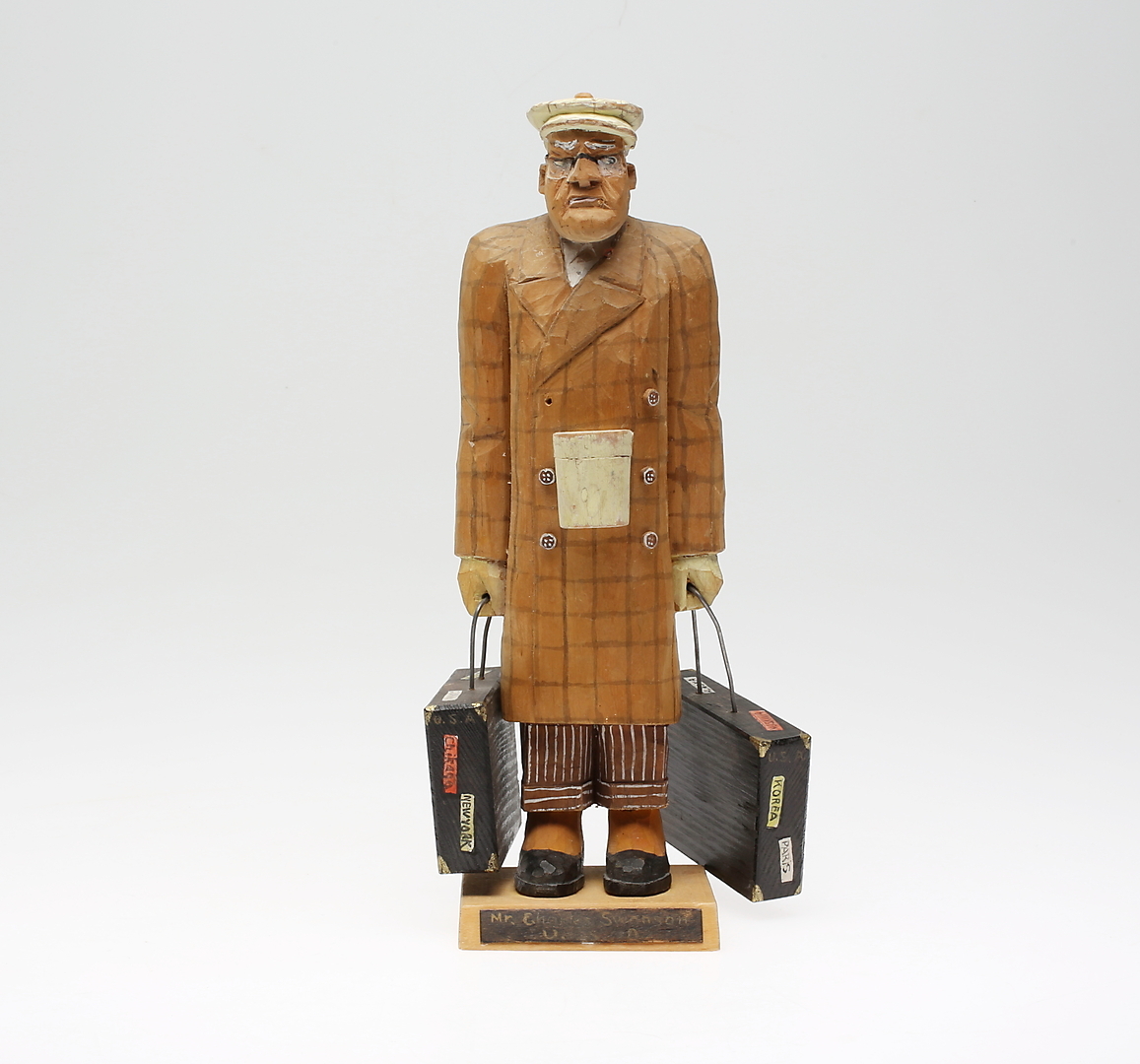 201931. AXEL ERICSON. Holzfigur, Schild "Der Reisende".