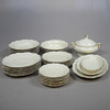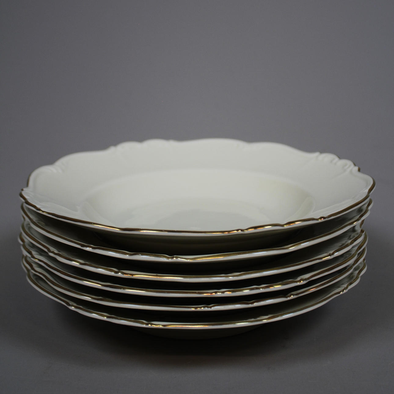 6 Speiseteller 25 cm 6 tiefe Teller 25 cm 6 Vorspeisenteller 21 cm 7 Teller 16,5 cm 3 Platte 23-34,5 cm 1 Terrine mit Deckel 1 Schüssel.