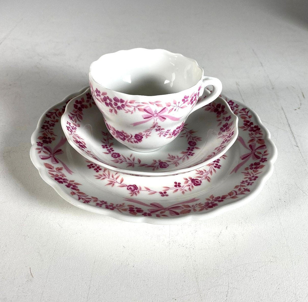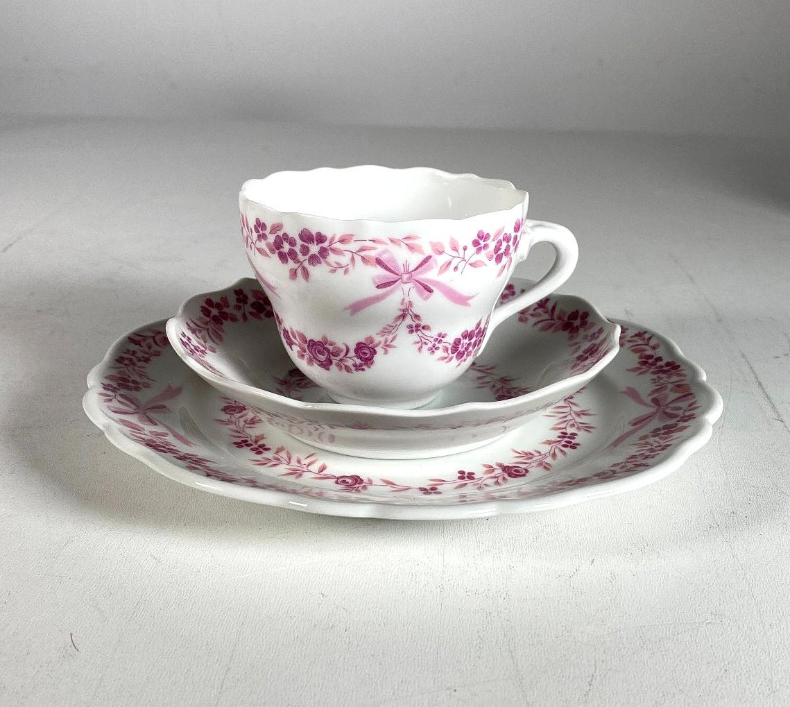 Höhe Kaffeekanne 24 cm, Ø Kuchenteller 19,7 cm. Unterseitig Manufakturmarke.