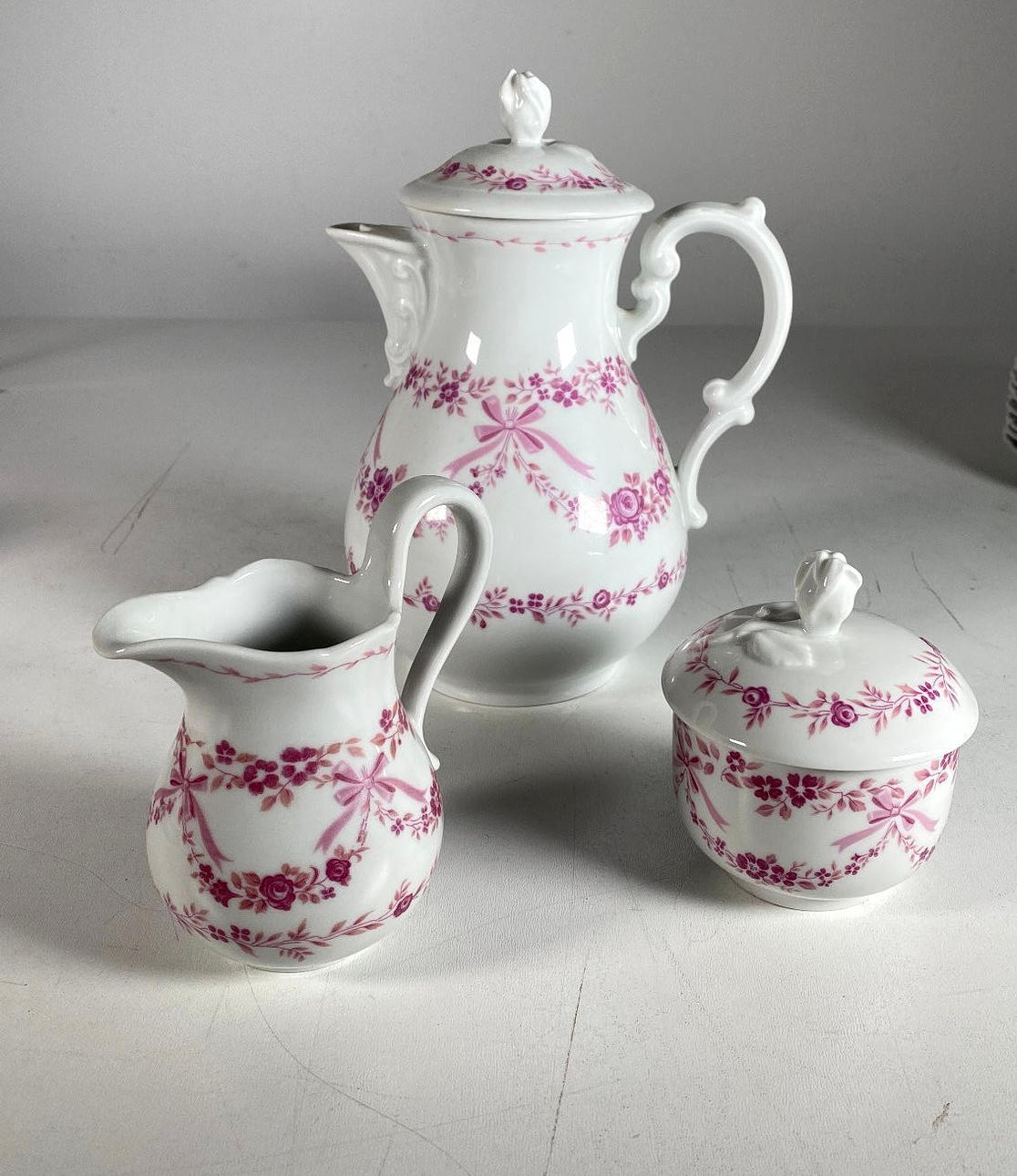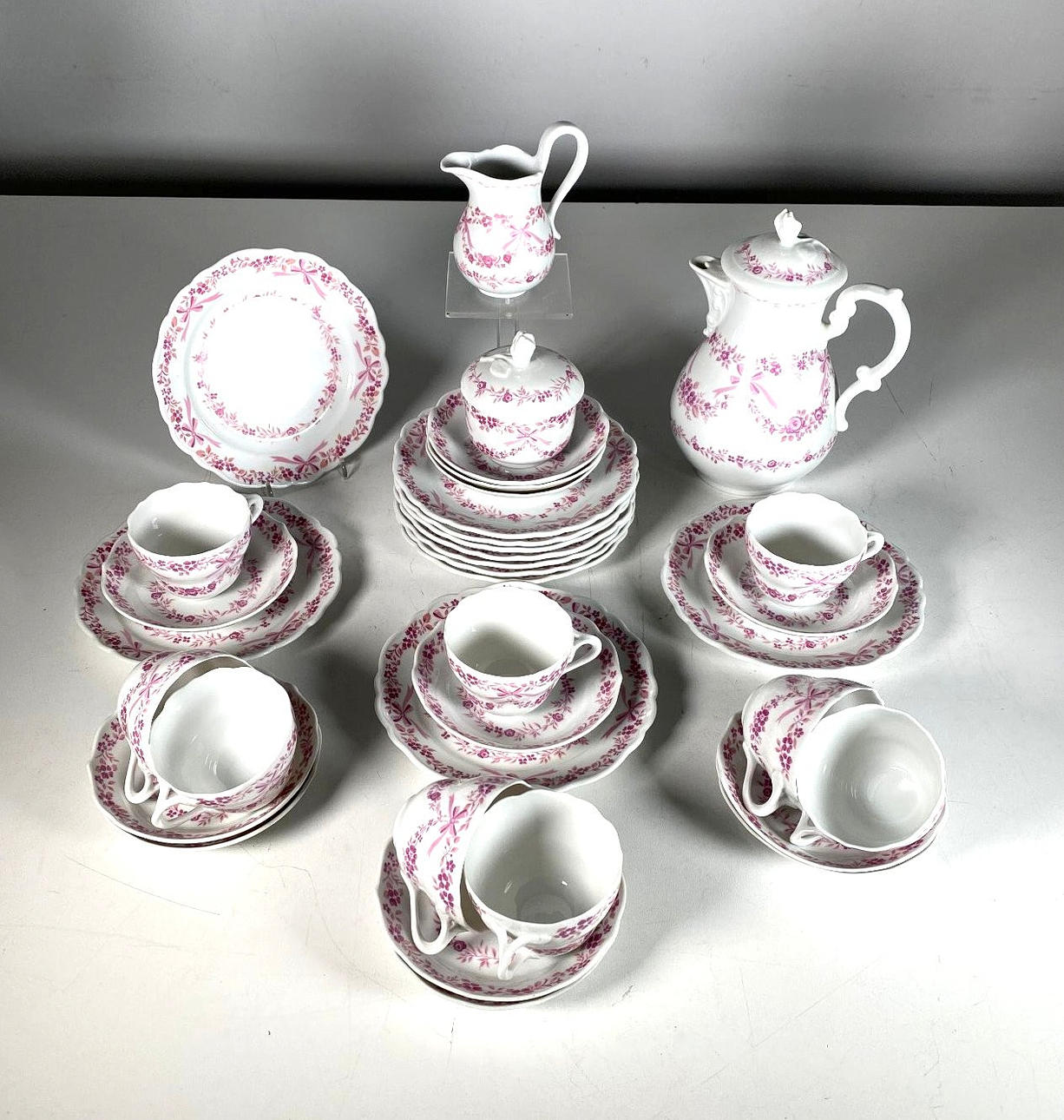 Hutschenreuther Kaffeeservice bestehend aus 1 Kaffeekanne, 1 Milchgießer, 1 Zuckerdose, 11 Kuchentellern, 9 Kaffeetassen und 12 Untertassen.