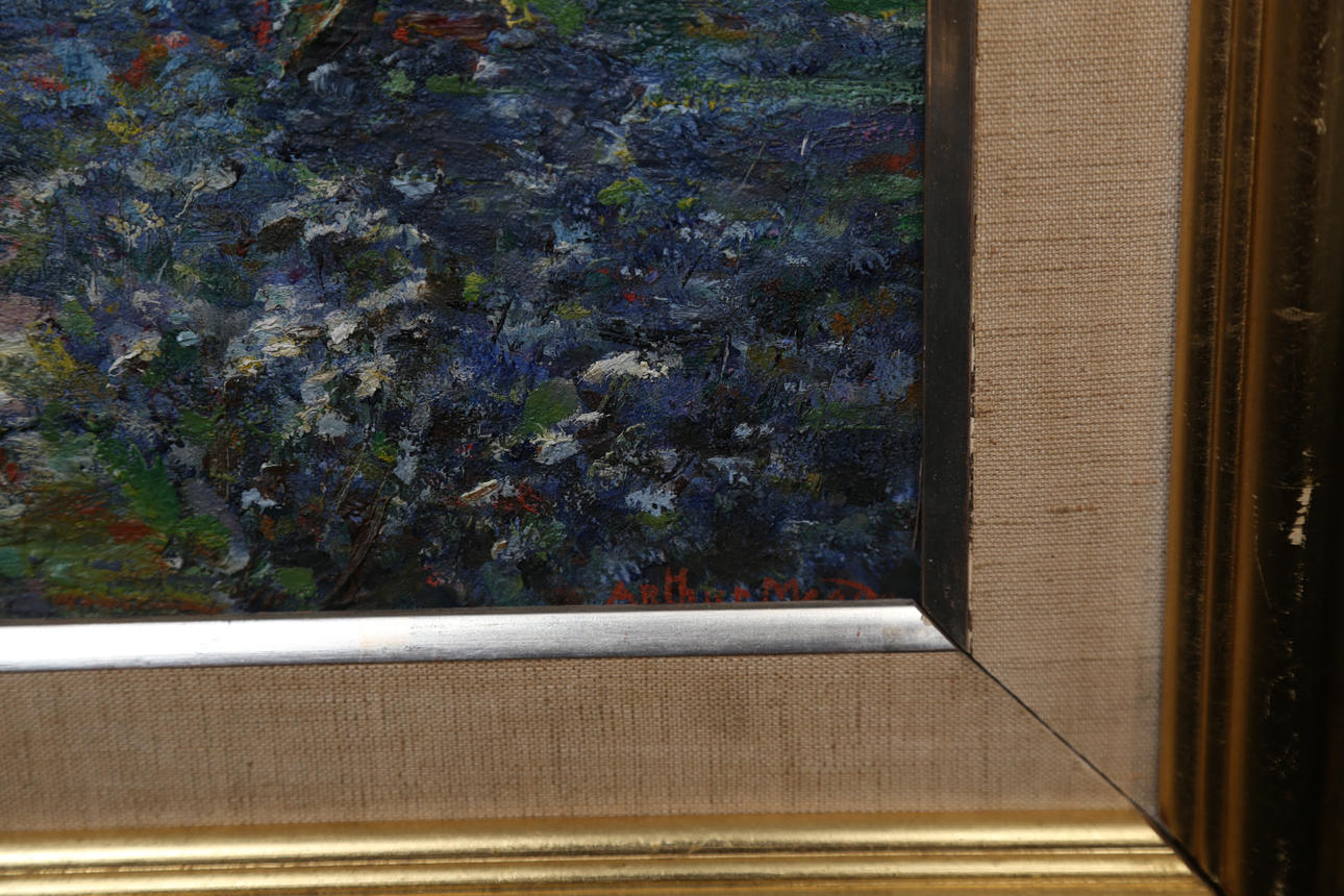 2021016. ARTHUR MEADE. Waldlandschaft. Öl auf Platte, signiert.